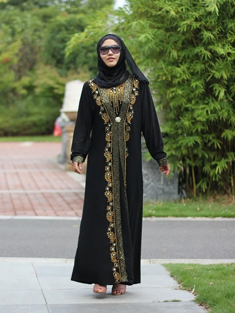 Abaya-Robe longue musulmane pour femmes, caftan à paillettes et perles, tenue élégante, épissure, maxi, vêtements islamiques |