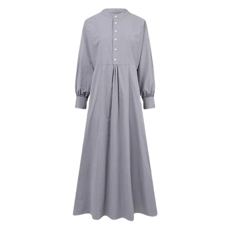Abaya – Robe longue musulmane rétro, décontractée, taille ample, col rond, grande balançoire, en coton, couleur unie, Patchwork, printemps |