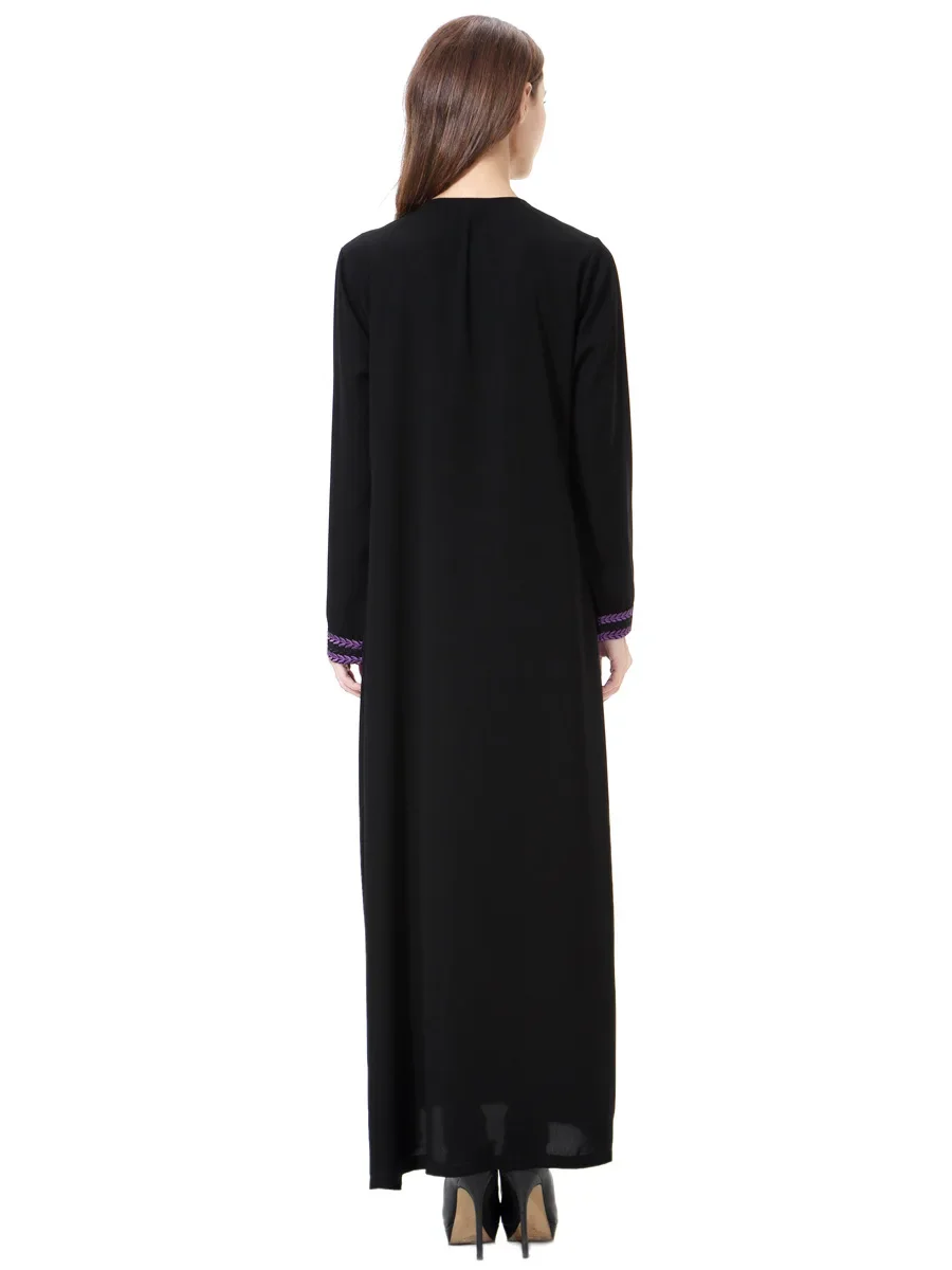 "J'ai été enchantée de recevoir cette abaya-robe musulmane. La coupe est vraiment élégante et flatteuse, et le tissu est doux et de très bonne qualité. Le seul bémol est que la couleur noire attire un peu trop la chaleur, mais cela reste un produit très agréable à porter au quotidien comme pour les occasions spéciales. Je le recommande vivement !"