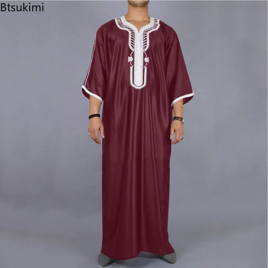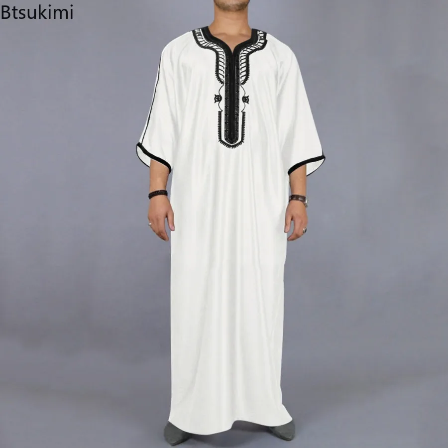 Abaya-Robe musulmane blanche brodée pour homme, style ethnique décontracté, Ramadan, crème, Zina, Islam, Kameez, Galabia, printemps, nouveau, 2025