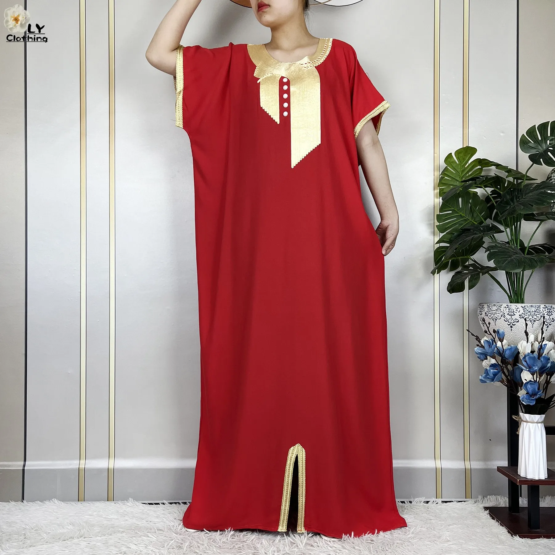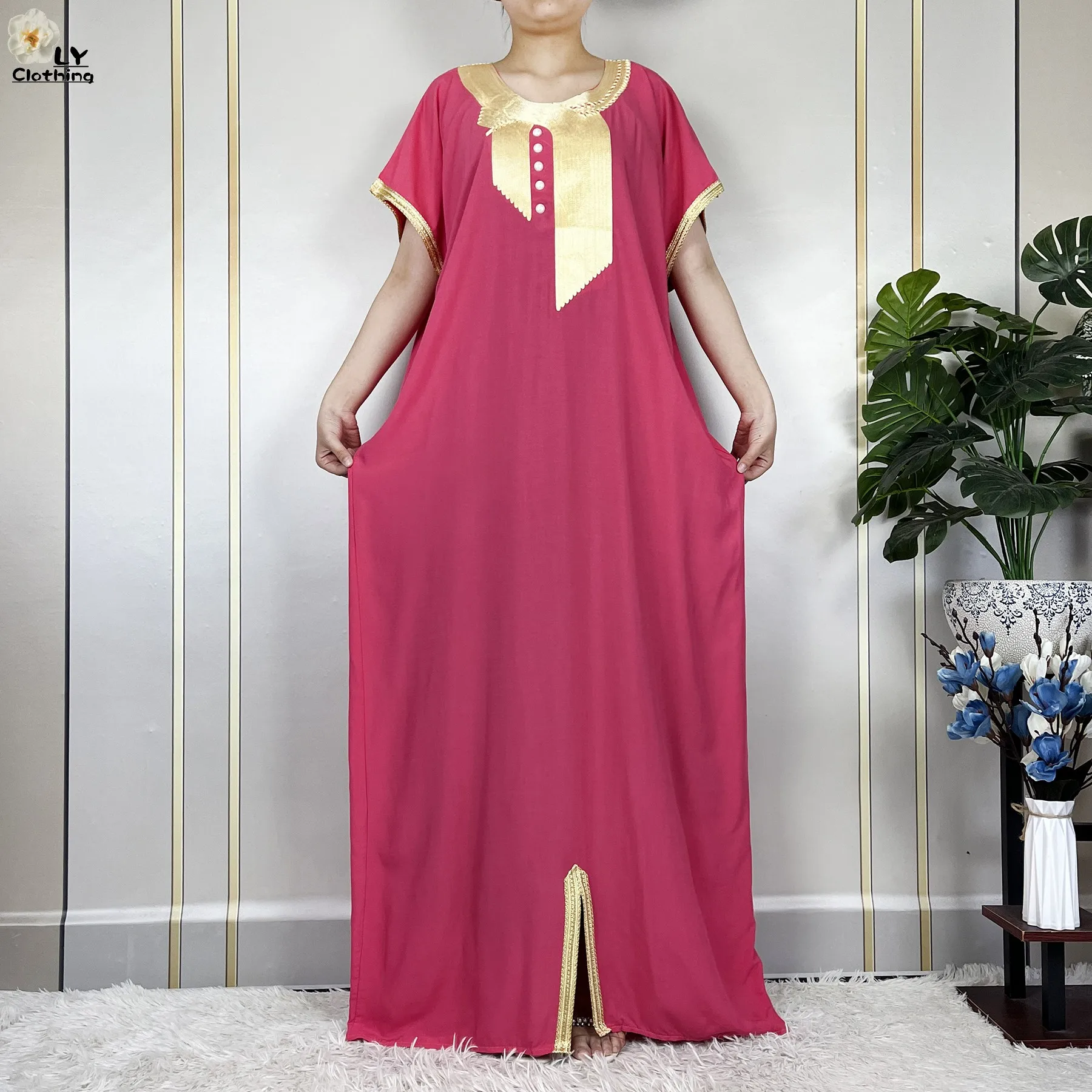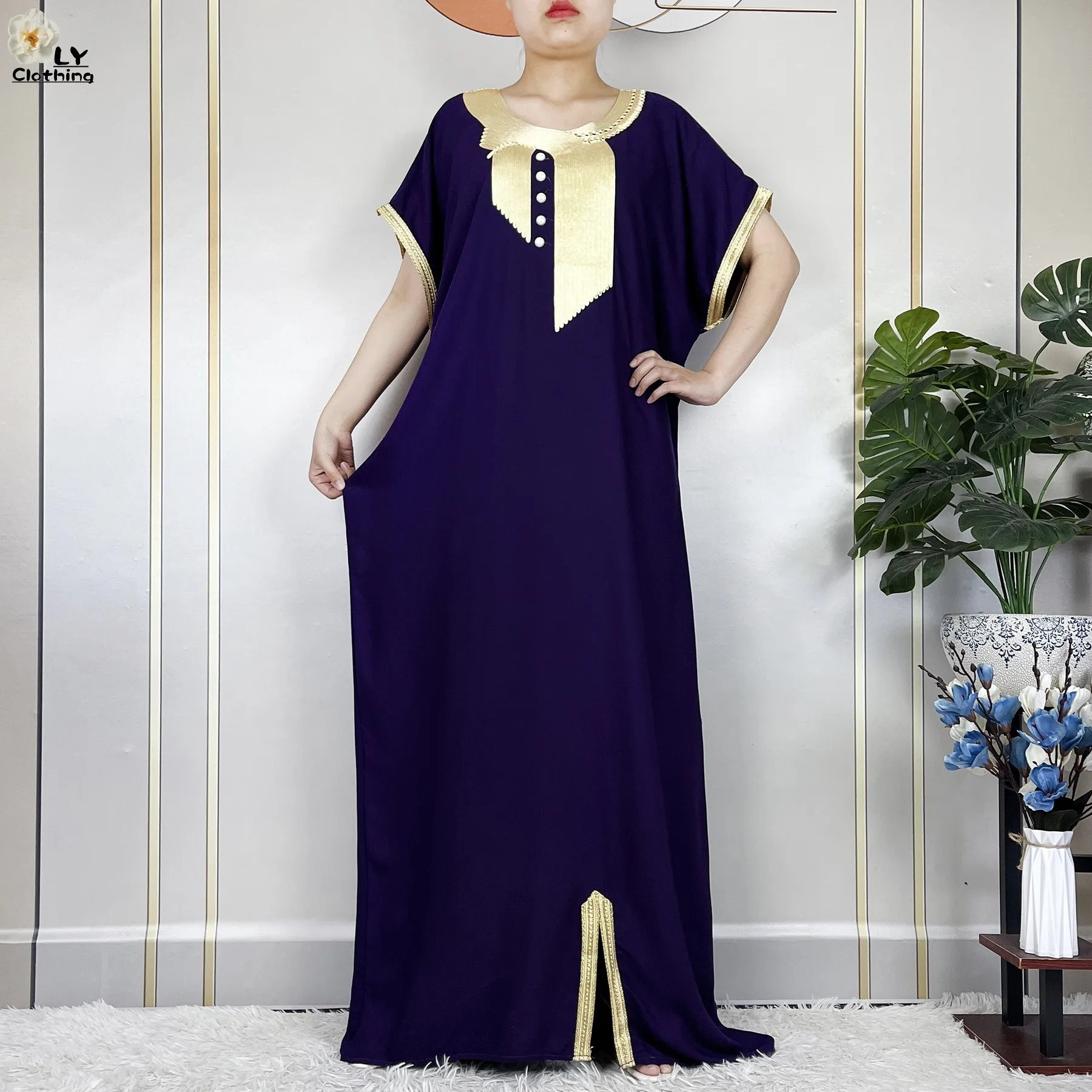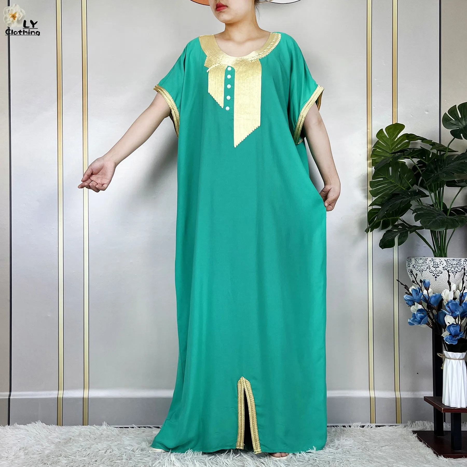 Abayas Africaines en Coton Pur pour Femmes, Caftan Islamique, Maxi, Manches Courtes, Robe Musulmane Décontractée avec Écharpe de Sauna, Nouvelle Collection |