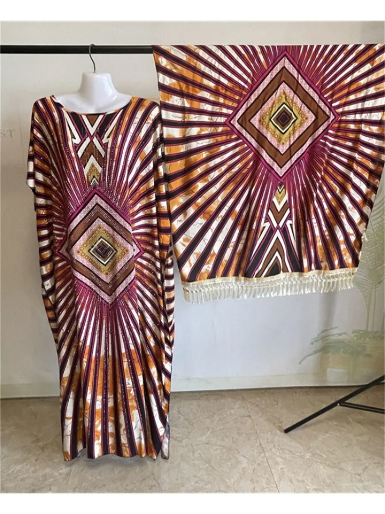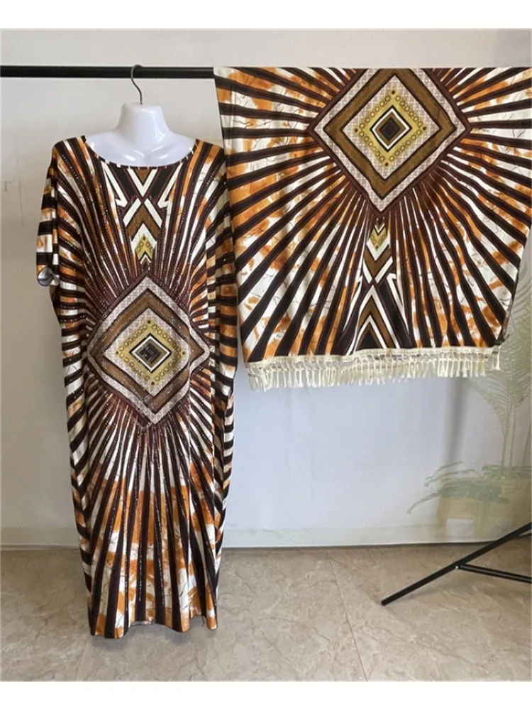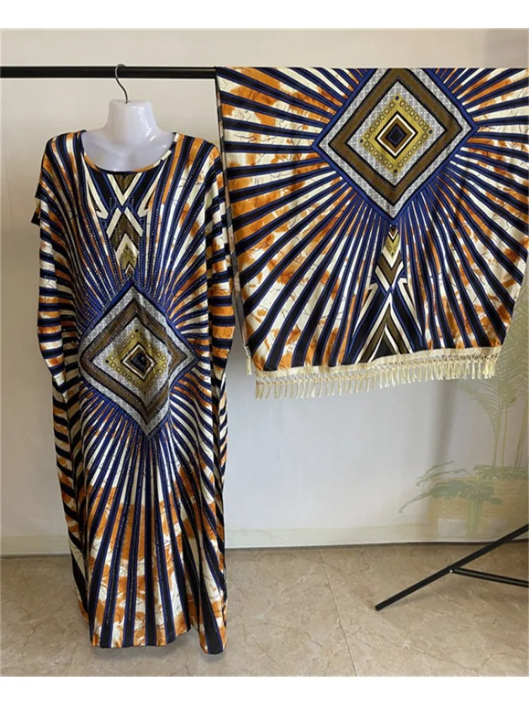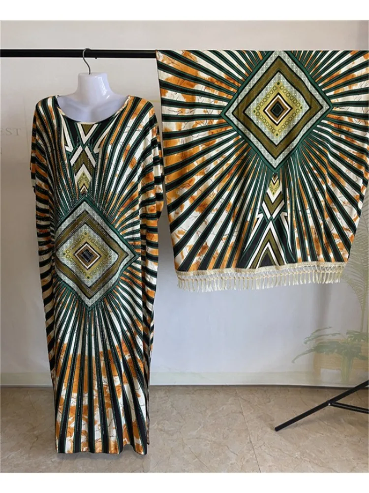 Abayas musulmanes pour femmes, ensembles de vêtements de prière imprimés en coton, Robe africaine ample avec grande écharpe Shwal, nouvelle collection 2025 |