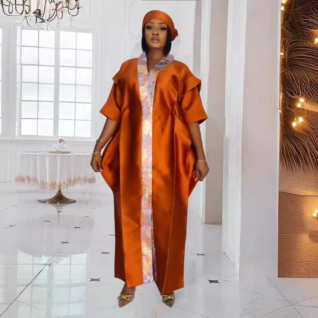 Abayas musulmans en mousseline de soie pour femmes, robe maxi bazin, motif imprimé caftan, manches chauve-souris, ceintures, robe pull, dashiki africain, dubaï |