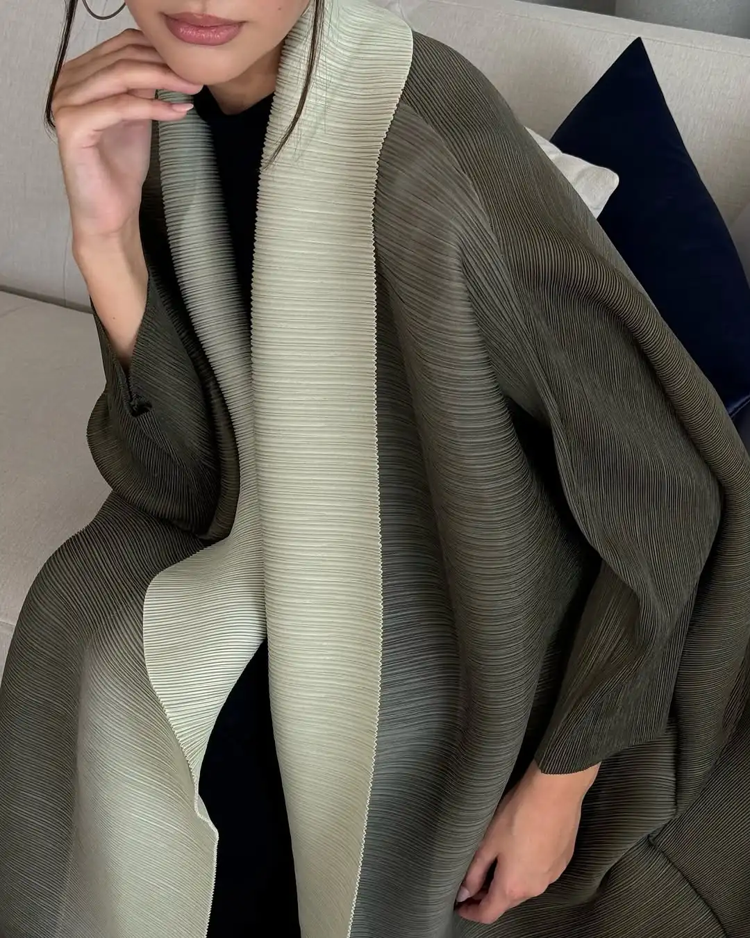 "J'ai été très satisfaite de cette nouvelle abaya Miyake. La qualité des tissus et de la confection est vraiment au rendez-vous. Le plissé est magnifique et donne un effet très élégant. La coupe ample est très confortable et flatteuse. Le seul petit bémol serait que le choix des coloris pourrait être un peu plus étendu, mais cela n'enlève rien à la beauté de ce vêtement. Je le recommande vivement à toutes les femmes à la recherche d'une abaya de grande qualité."