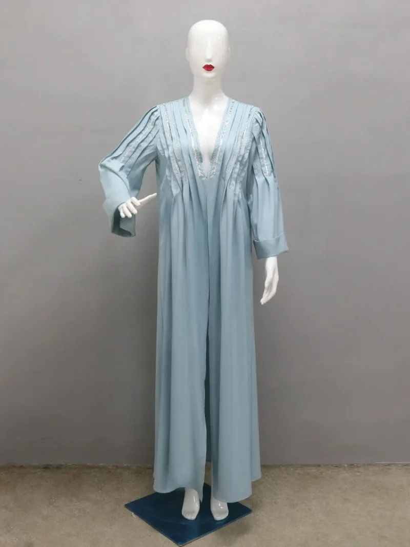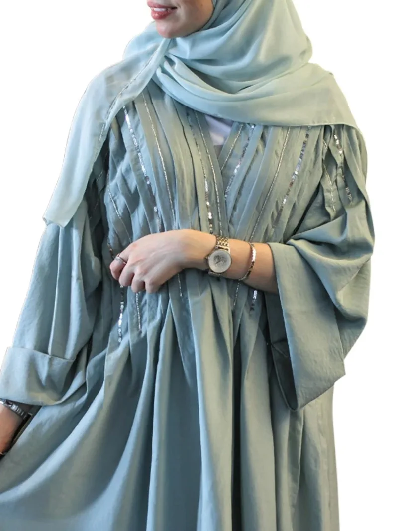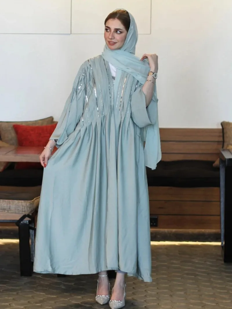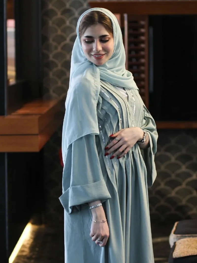 "J'ai été vraiment ravie de recevoir cette magnifique abaya. La coupe est élégante et les paillettes lui donnent un superbe éclat. Le tissu est de très bonne qualité, doux et agréable à porter. Le seul petit bémol serait que la taille était un peu juste à la réception, mais après un léger ajustement, tout est parfait. Dans l'ensemble, c'est une excellente robe qui me fait me sentir belle et confidente à chaque fois que je la porte. Je recommande vivement ce produit !"