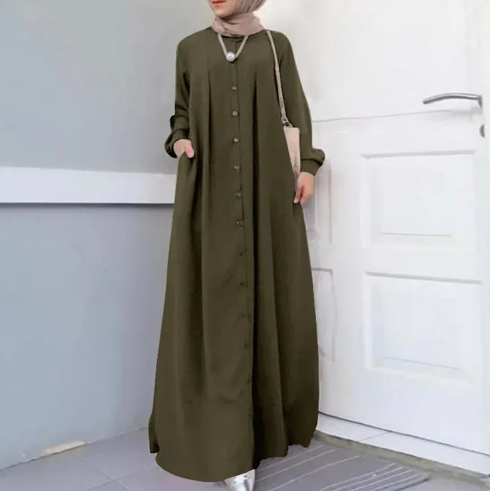 Abayas vertes pour femmes musulmanes, Caftan arabe, robes amples en coton et lin, vêtements à la mode, nouvelle collection 2025 |