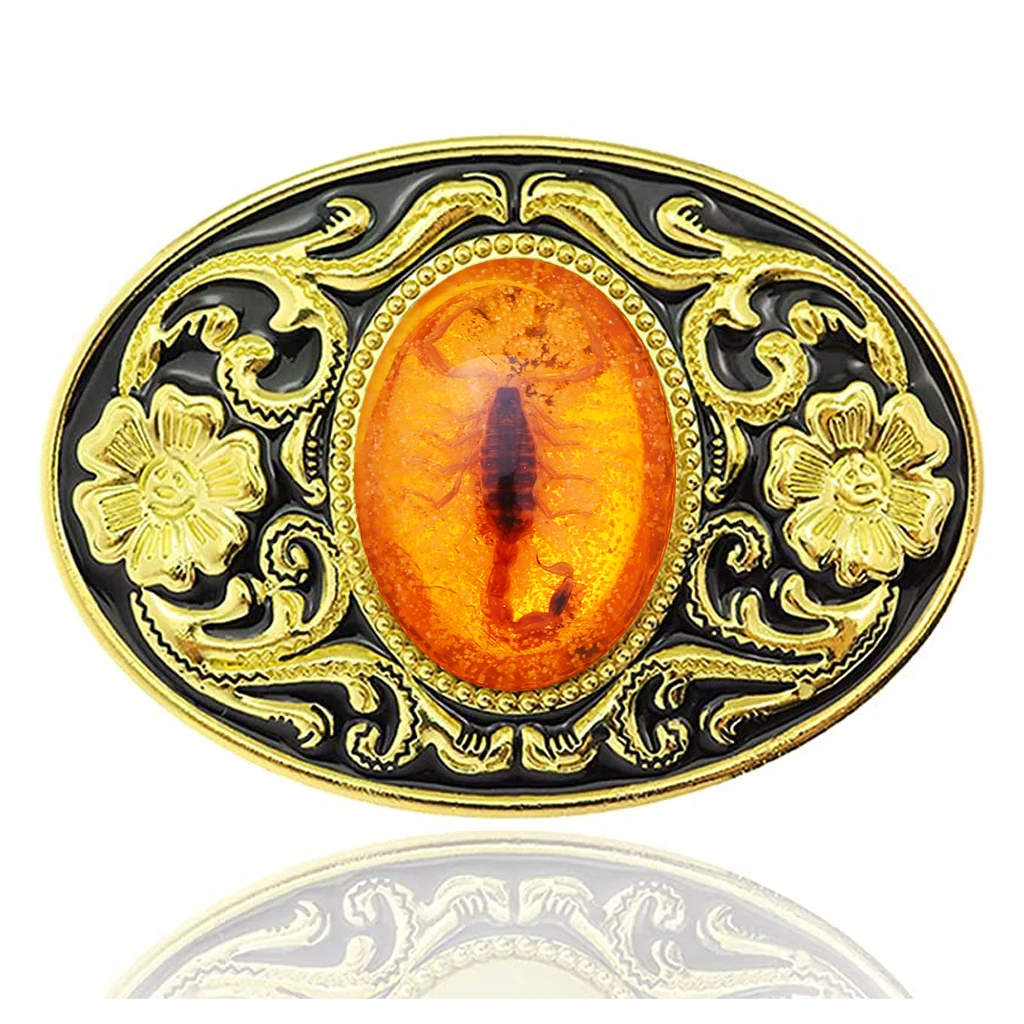 Accessoires pour jeans avec boucle de ceinture Scorpion animal à motif floral en alliage d'or |