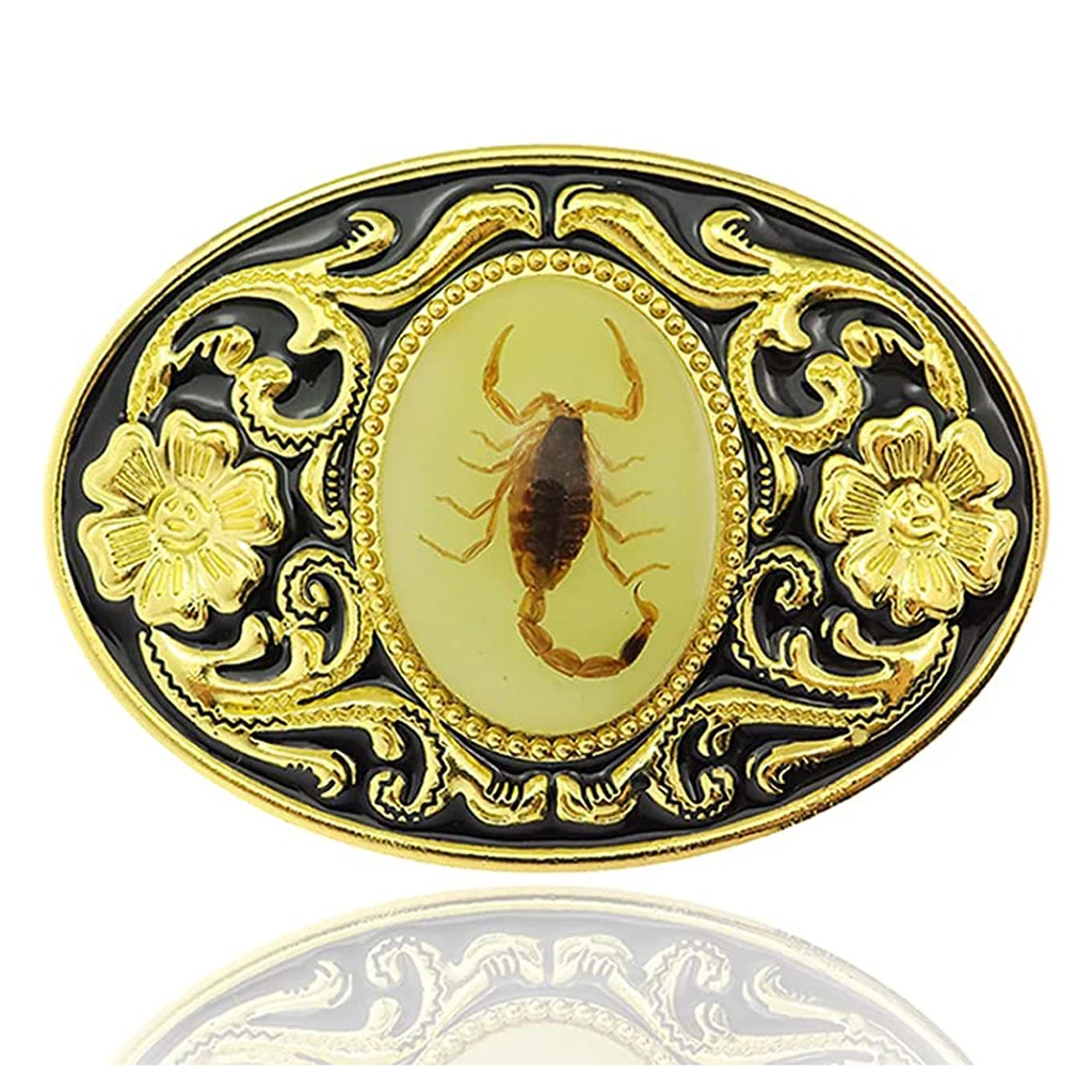 Accessoires pour jeans avec boucle de ceinture Scorpion animal à motif floral en alliage d’or