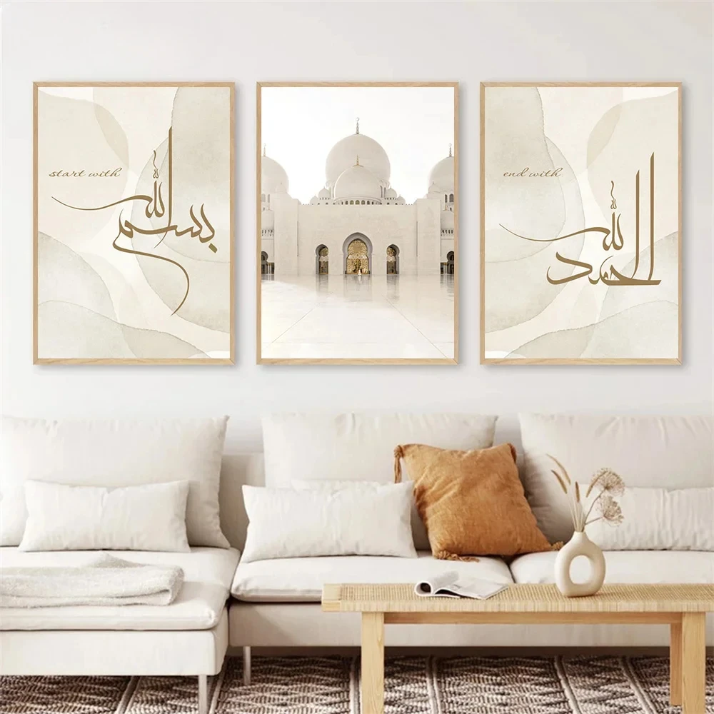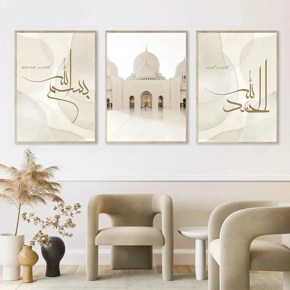 Affiche de Calligraphie Islamique du Maroc Ayatul Kursi Projecan, Peinture à l’Huile, Art Mural Musulman, Impression d’Image Beige, Décoration de Maison Murale