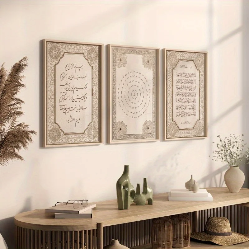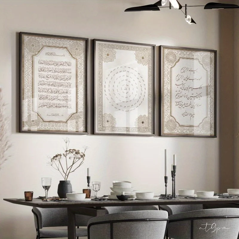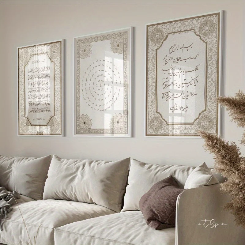 Affiches en toile musulmane islamique, 3 pièces/ensemble, calligraphie arabe du coran, imprimés d'art muraux pour salon moderne, maison, cadeaux Eid al-fitr |