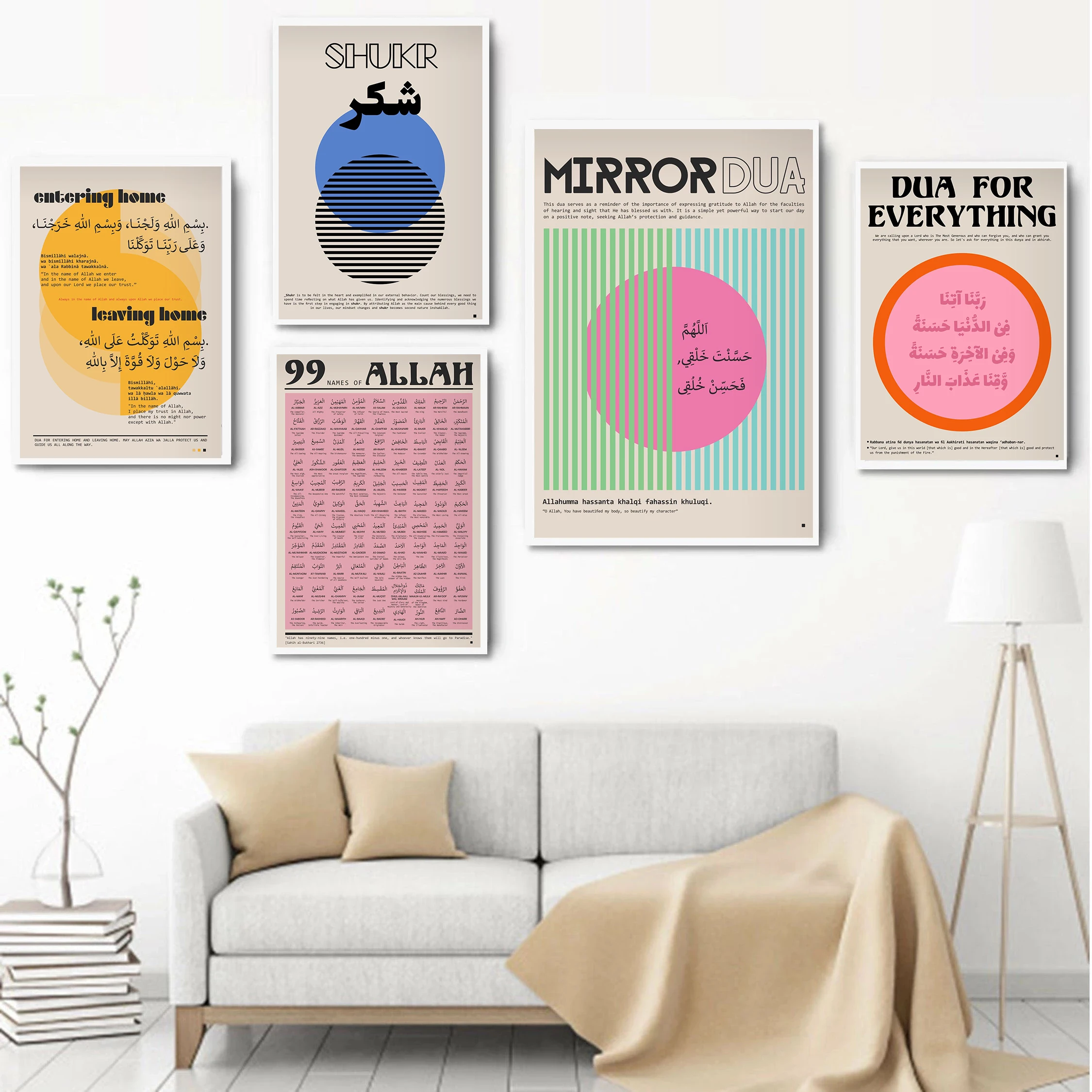 Affiches rétro Bauhaus, imprimés islamiques, calligraphie arabe, coran, 99 noms d’Allah, peinture sur toile, tableau d’art mural, décor de salle de maison