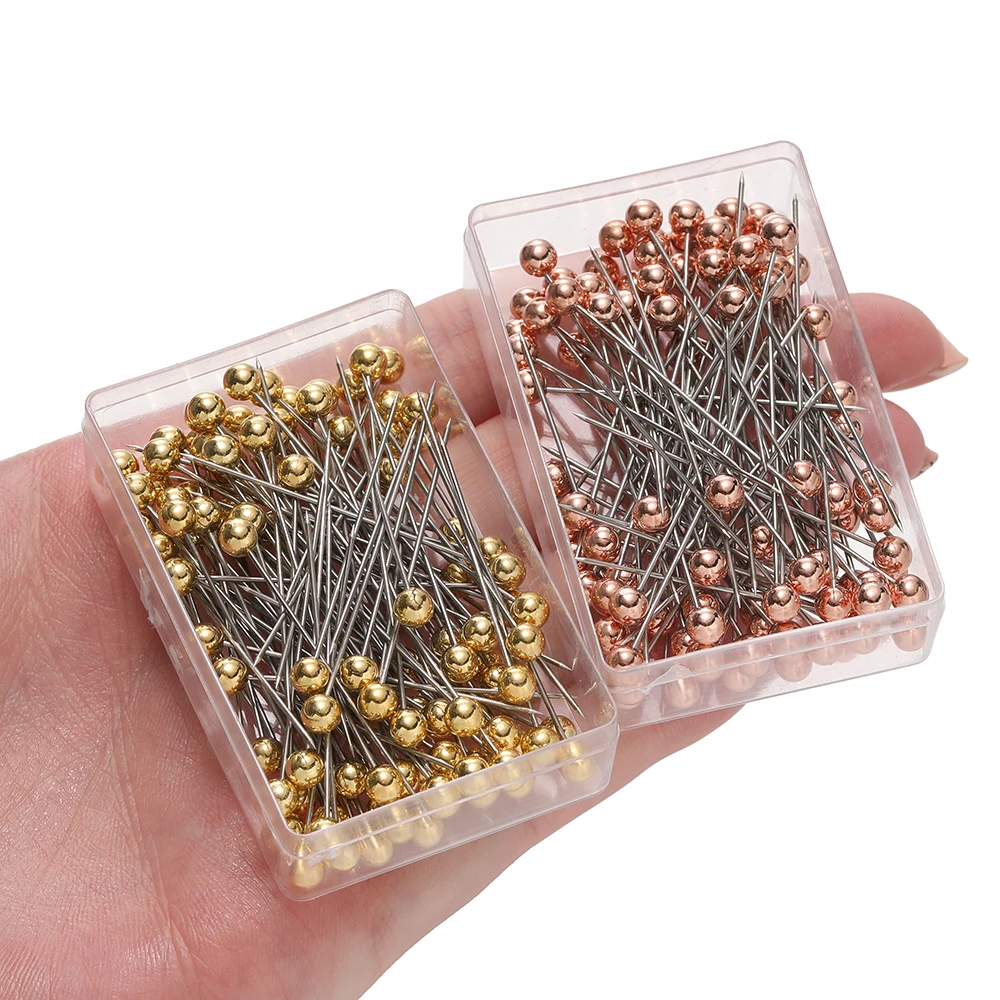 Aiguilles à tête de perle ronde en acier inoxydable, 100 pièces/boîte, épingles à coudre droites pour la couture, bricolage, outil de couture, positionnement