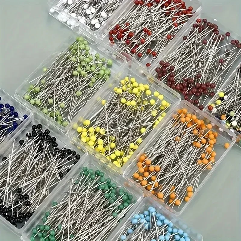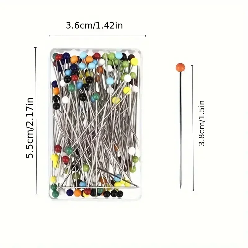 Aiguilles à tête de perle rondes colorées de 38cm, 100 pièces/boîte, épingles à coudre droites pour la couture, bricolage, outils de couture, positionnement |
