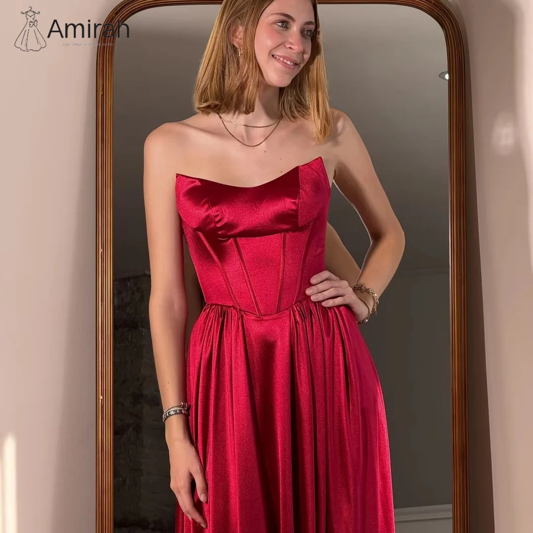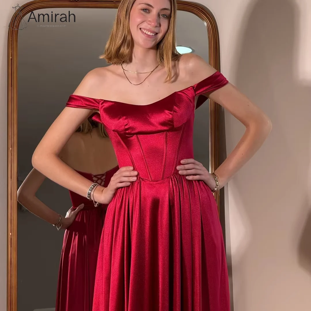Amirah robe de bal épaules dénudées robes de soirée femme robes de soirée élégantes 2025 personnalisé une ligne Satin bordeaux rouge bal |