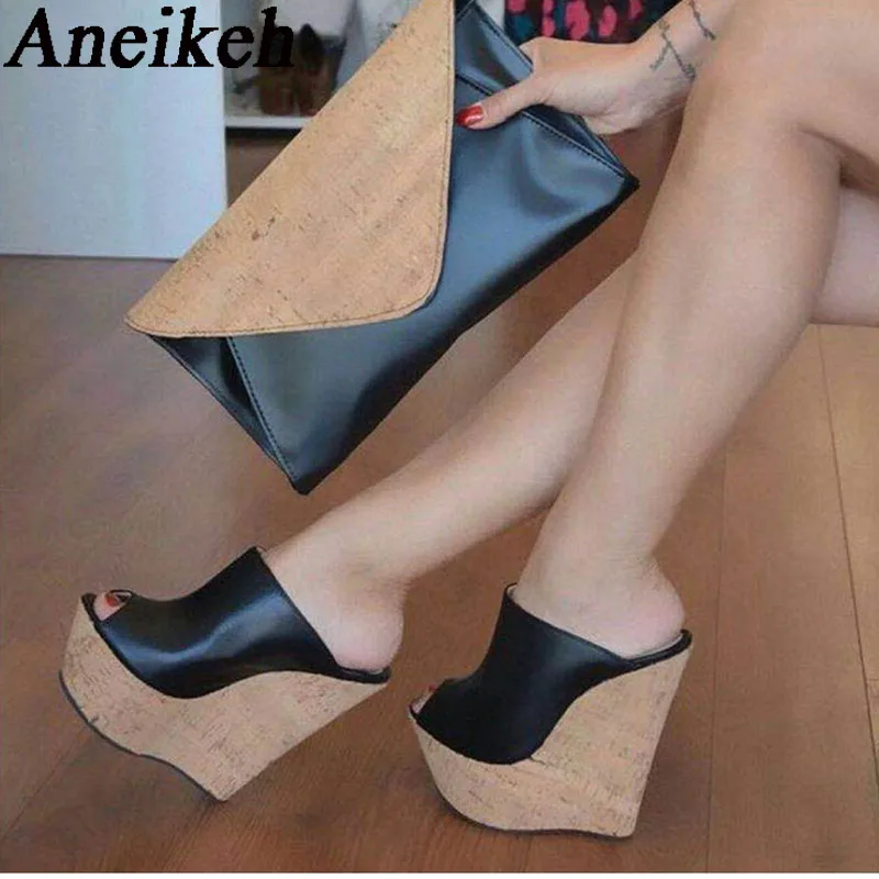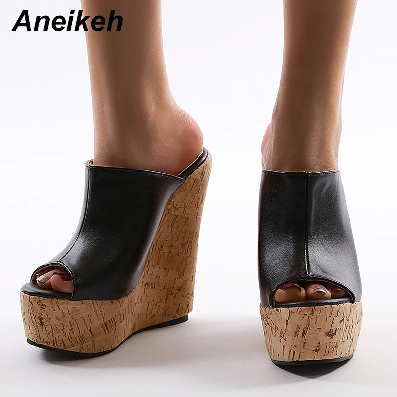 Aneikeh noir plate-forme sandales à talons compensés pantoufles 2025 été mode Peep orteil Super haute hauteur Sexy sandale Mules zapatillas mujer |