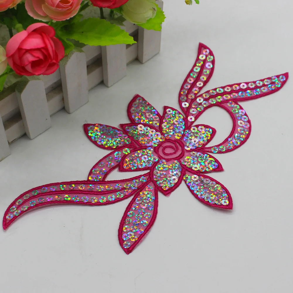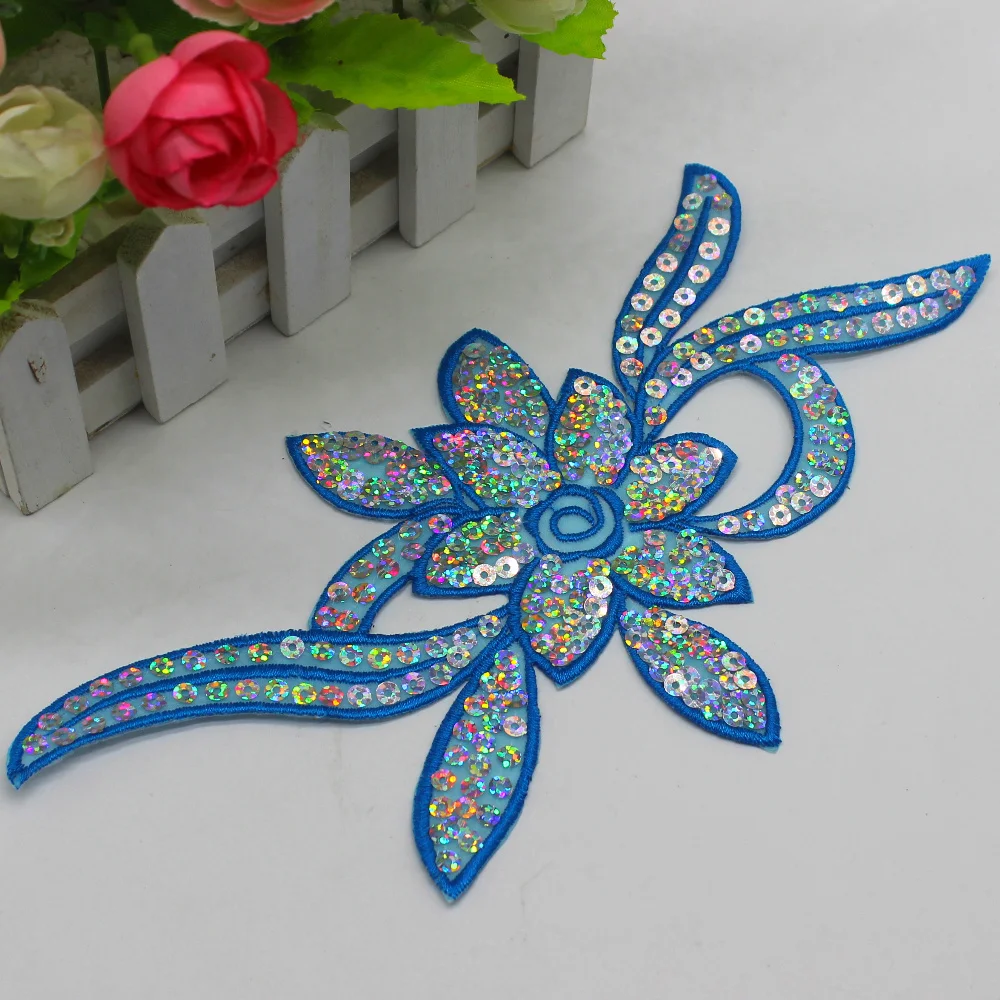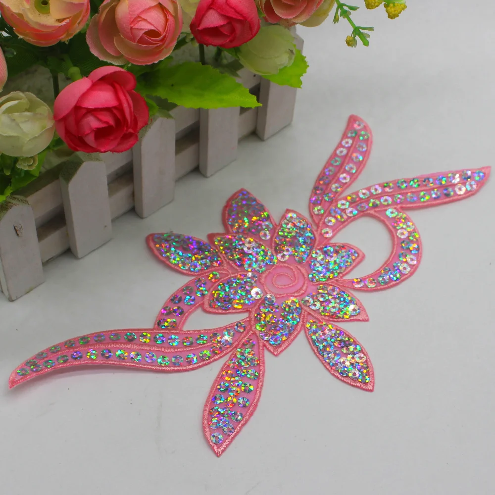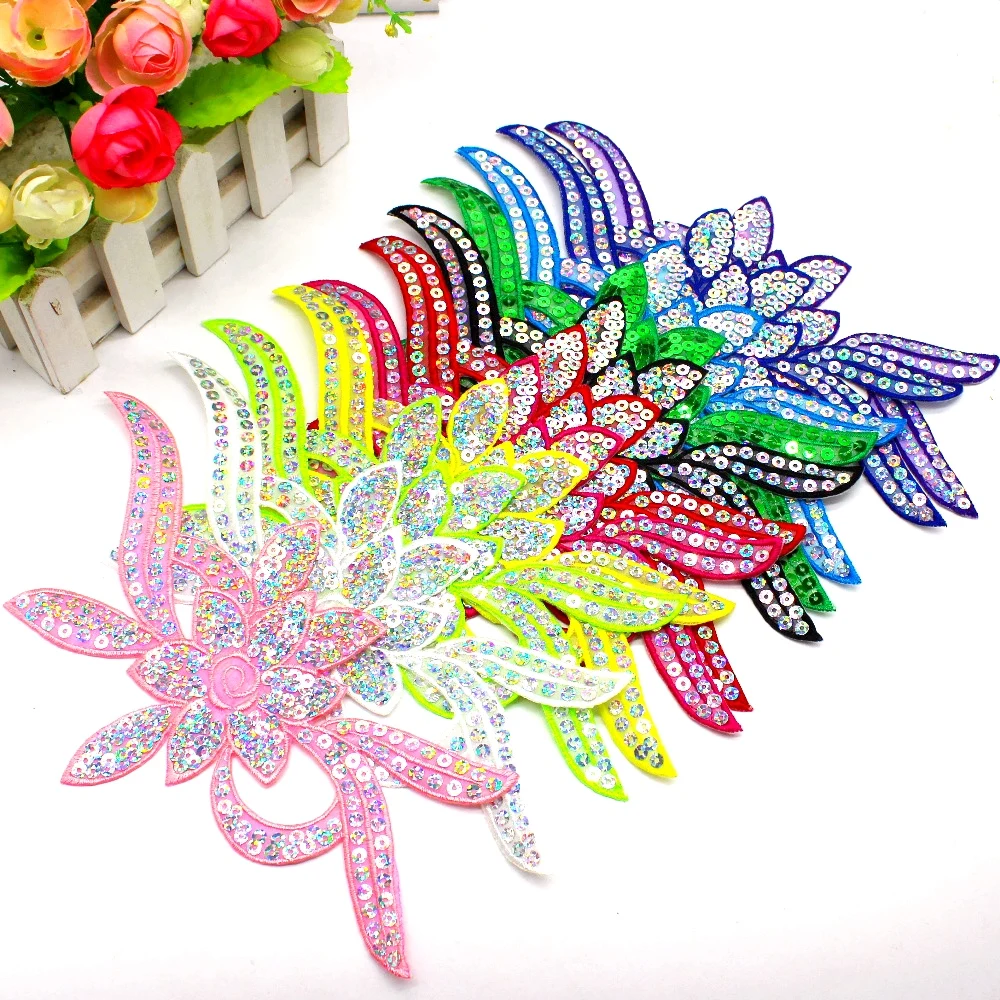 Appliques de fleurs à paillettes Laser, garnitures brodées à repasser sur les patchs 24x11CM |