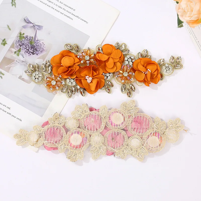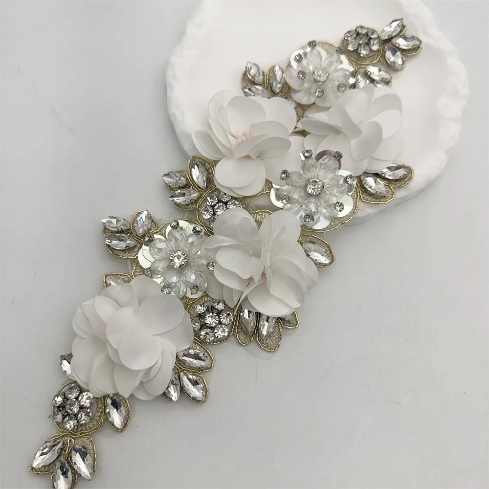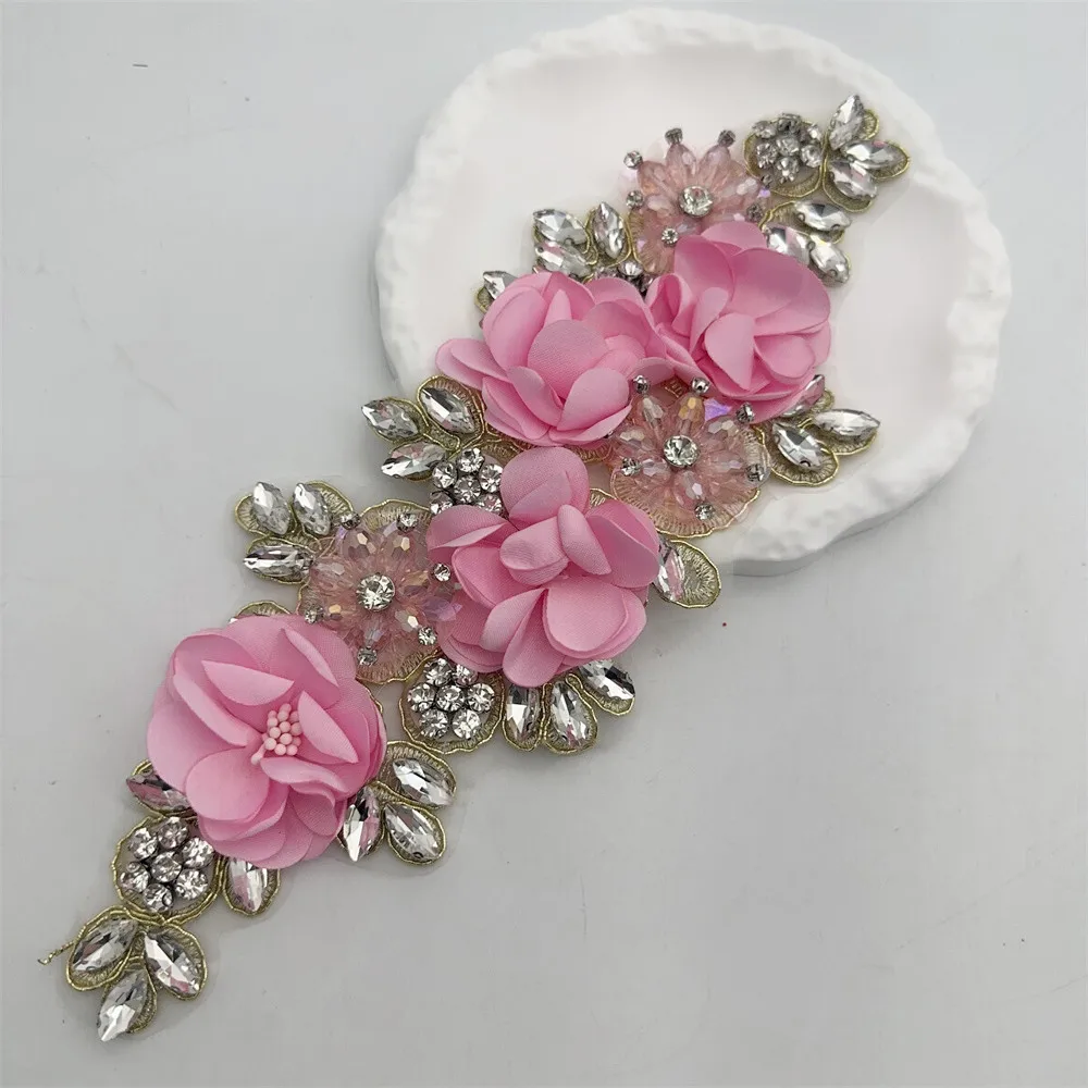 Appliques de tissu à coudre de fleurs 3D en strass pour vêtements, bandeaux de fleurs, artisanat, décoration de fête, appliques de couture |