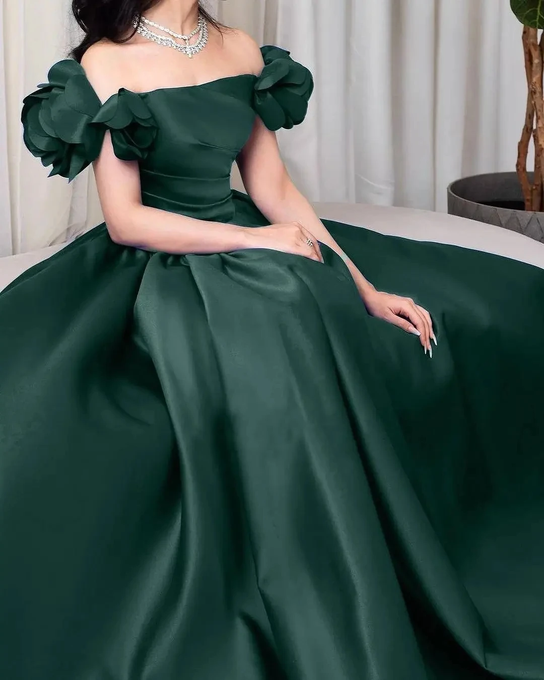 Arabie Saoudite Robes de soirée élégantes Vert Hors de l'épaule Robes de bal Longueur au sol Une ligne Robes de soirée formelles |