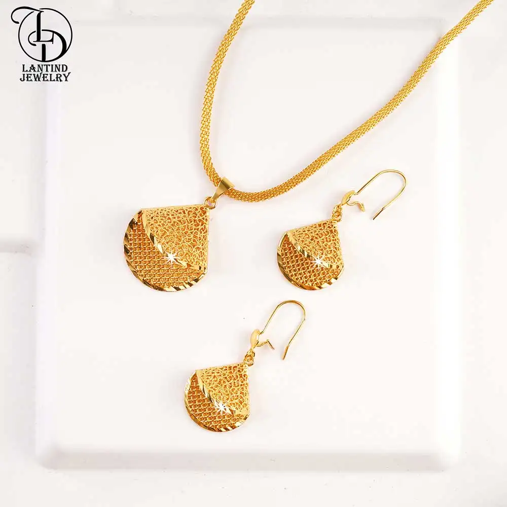 As00005 élégant 24K plaqué or femmes mode géométrique petit collier boucles d'oreilles mode creux ensemble clavicule chaîne crochets d'oreille |