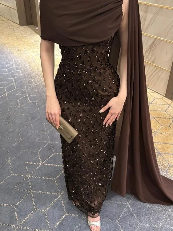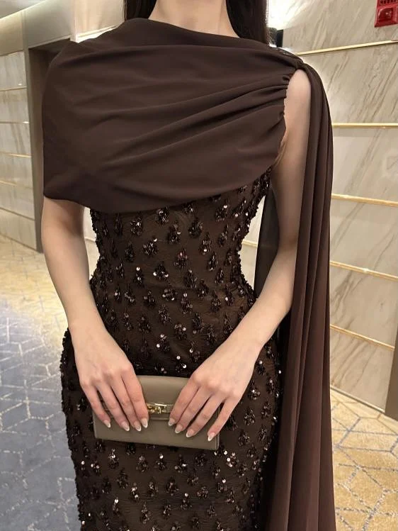 Soyez le premier à laisser votre avis sur “AsaNagi arabie robes de bal élégantes col rond femmes brillant marron simplement saoudien luxueux 2025 soirée فساتmavera”