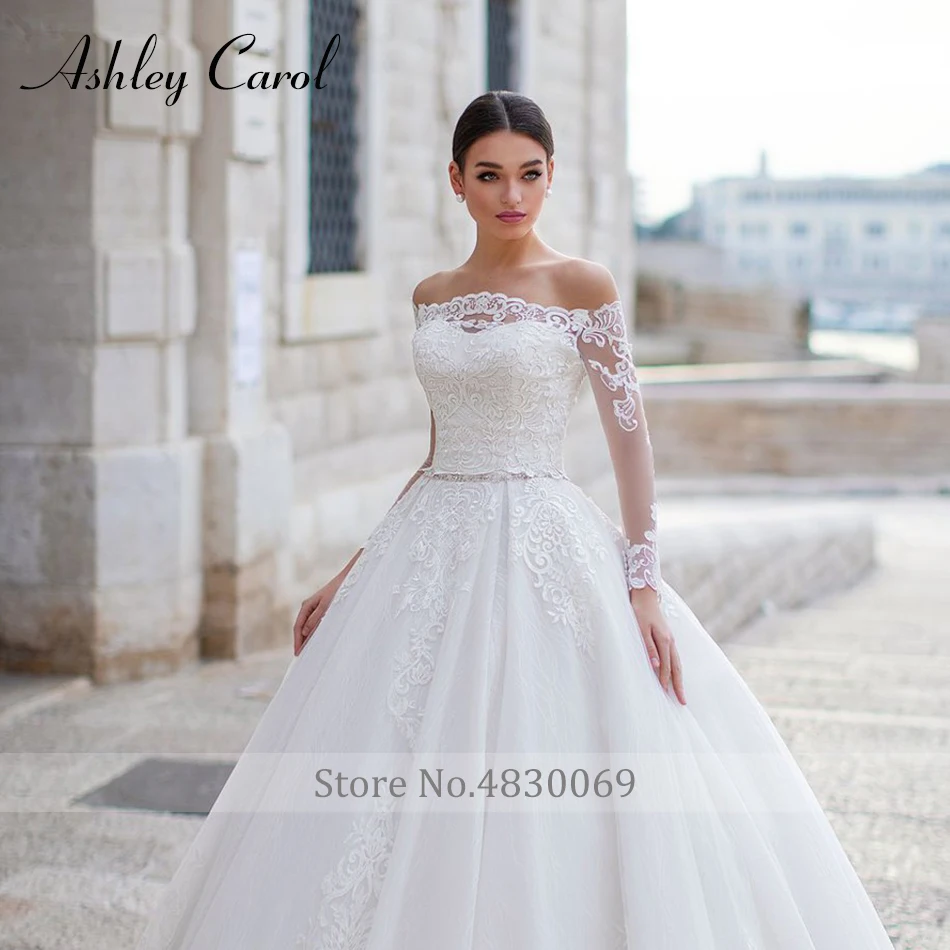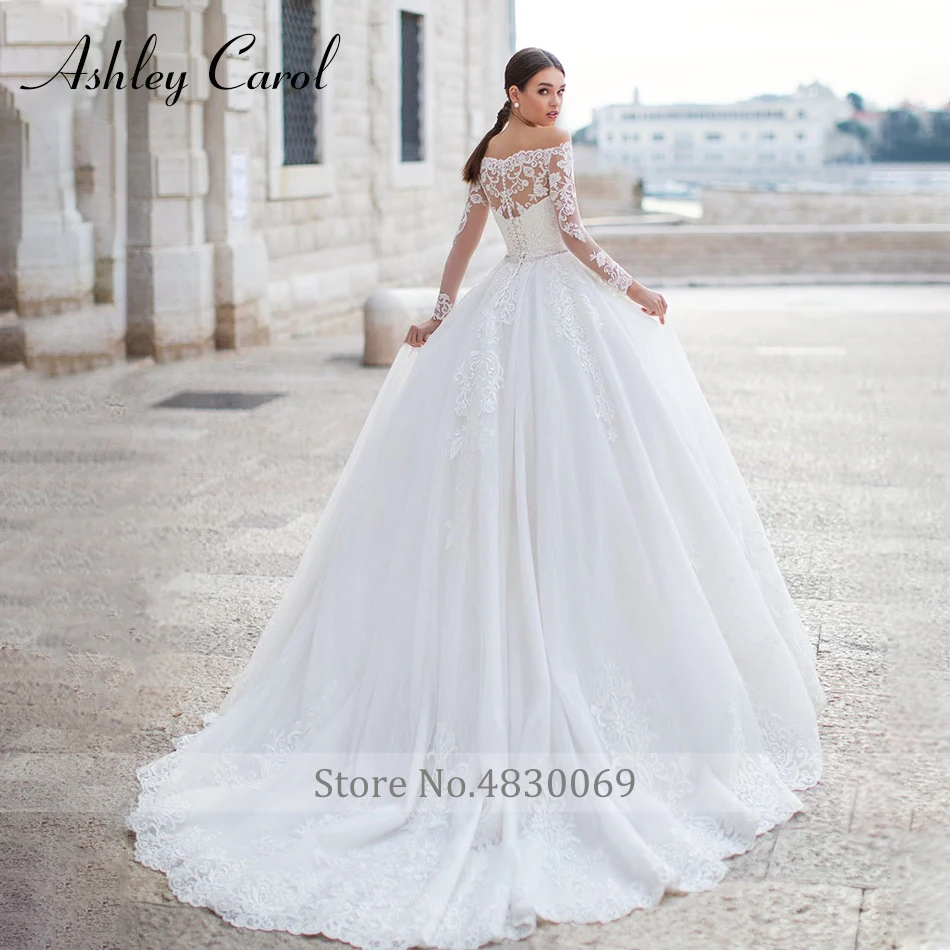 Ashley Carol robe De bal robe De mariée avec veste semi-transparente col bateau Appliques ceinture robe De mariée robes De Novia |
