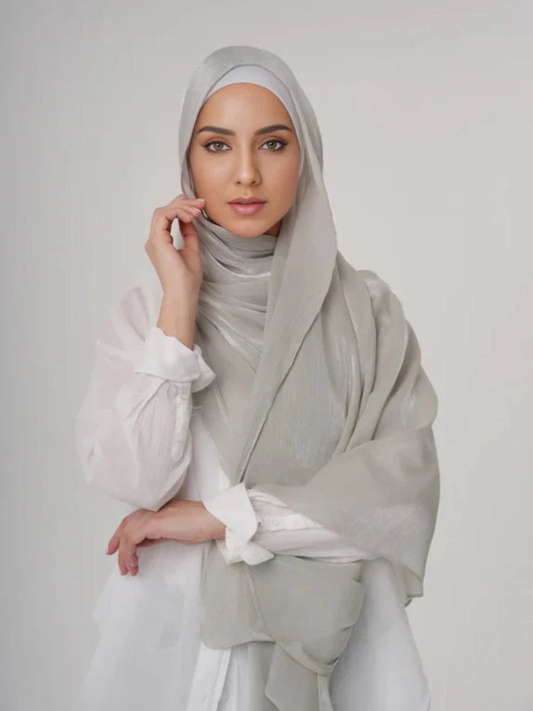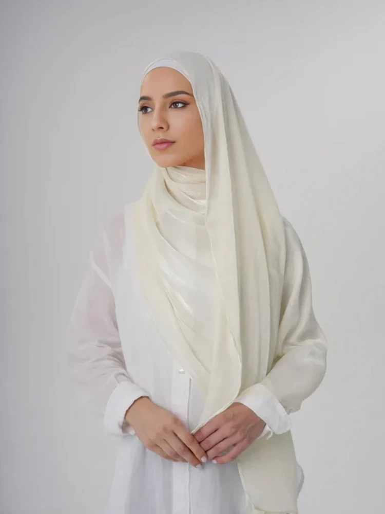 Aura soie Organza Hijab écharpe en mousseline de soie Hijabs pour les femmes respirant Long châle Turban tête enveloppement pour les femmes musulmanes mode Voile |