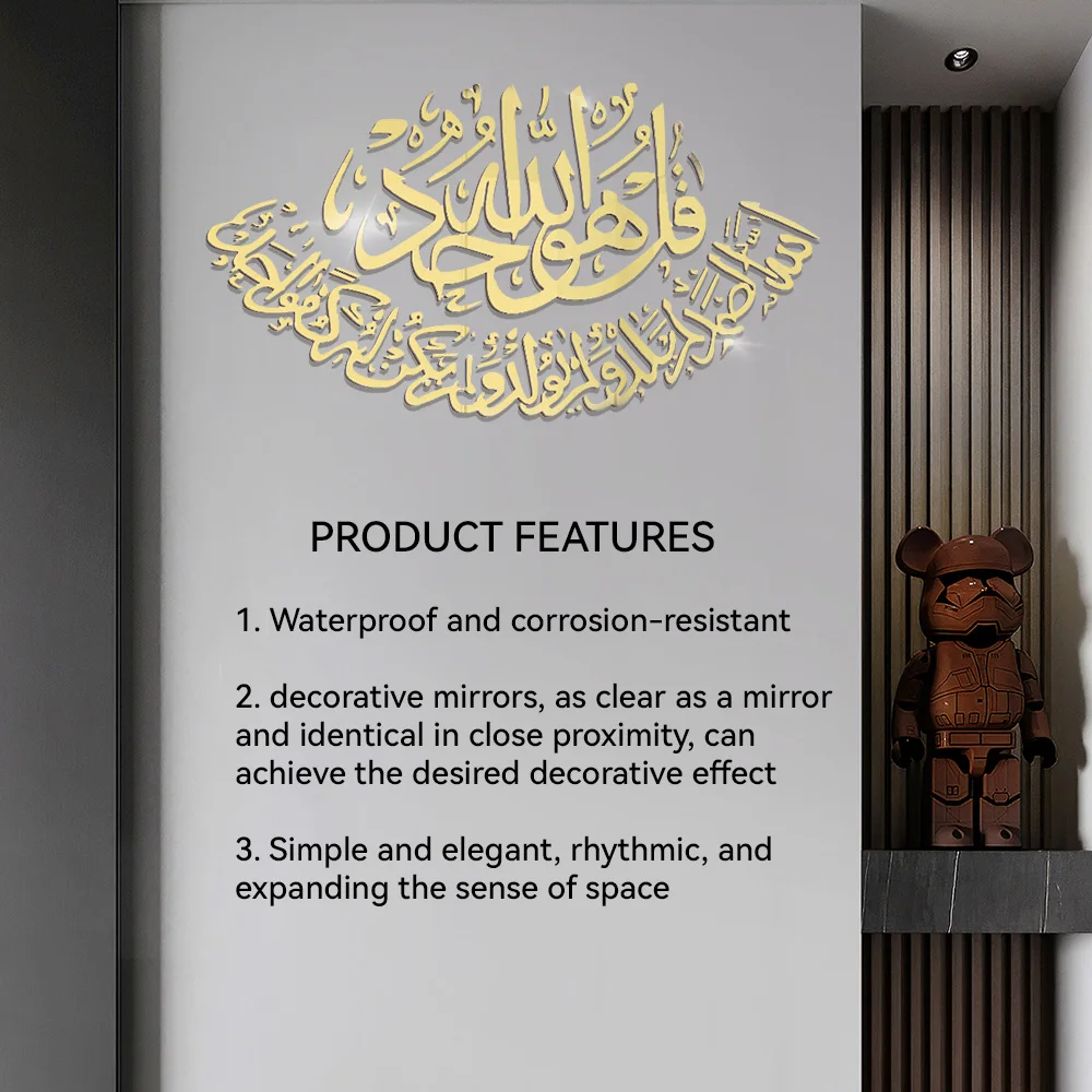 "Cet autocollant mural 3D islamique est vraiment magnifique ! La calligraphie arabe est superbe et donne une touche élégante à ma décoration. L'installation a été facile, et le miroir en acrylique ajoute une belle brillance. Le seul bémol est que le produit était un peu fragile à la réception, mais après l'avoir fixé au mur, il tient très bien. Dans l'ensemble, je suis très satisfait de cet achat qui apporte une belle touche musulmane et festive à mon intérieur, parfait pour les célébrations du Ramadan et de l'Eid Mubarak."