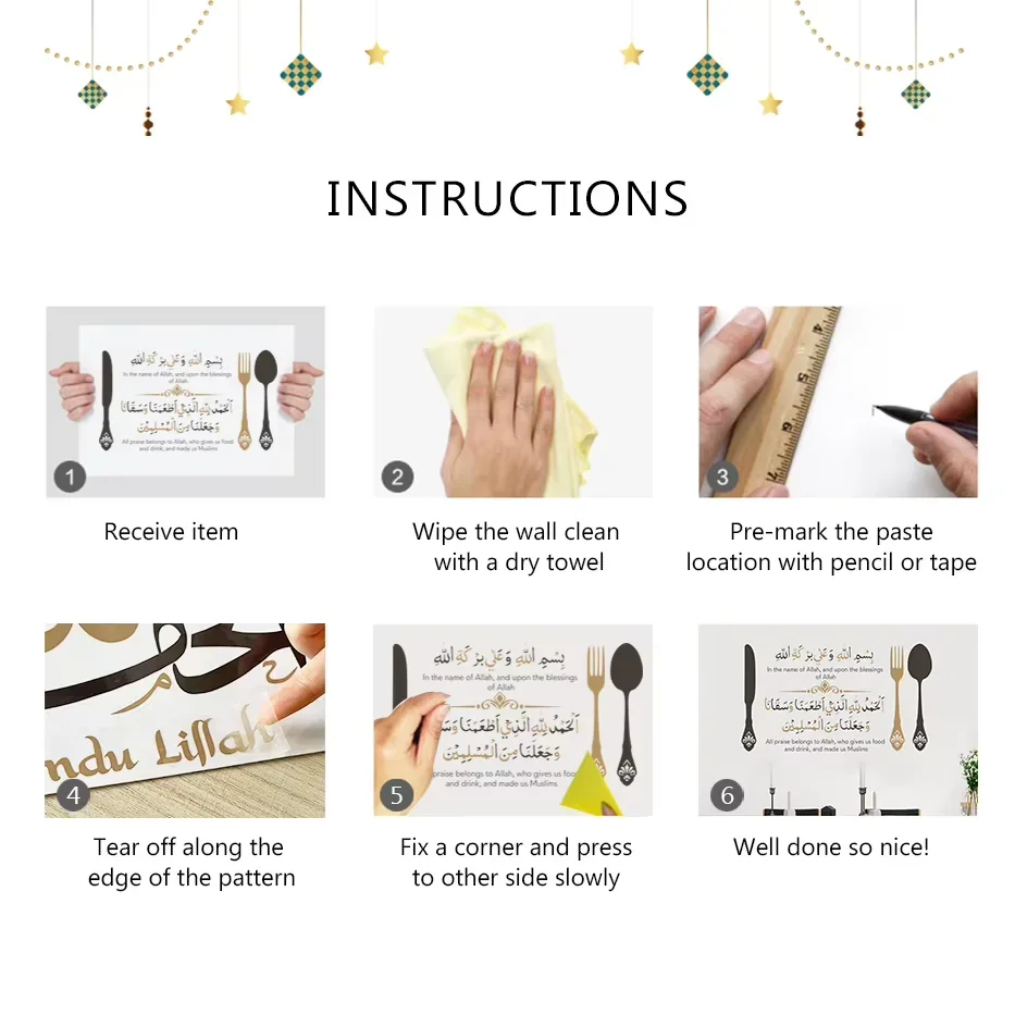 "J'ai été très agréablement surpris par la beauté et la qualité de cet autocollant mural islamique. La calligraphie arabe est magnifique et les motifs floraux lui donnent un aspect élégant et raffiné. L'installation a été très facile et le produit tient parfaitement sur le mur. Le seul bémol est que l'emballage était un peu abîmé à la réception, mais cela n'a pas nui à la qualité du produit lui-même. Dans l'ensemble, je suis très satisfait de mon achat et je le recommande vivement à tous les amateurs de décoration musulmane de qualité."