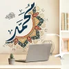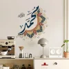 Autocollant mural artistique avec nom de Muhammad islamique, calligraphie arabe, Design Floral, autocollant mural musulman élégant, décor de salle de prière pour salon