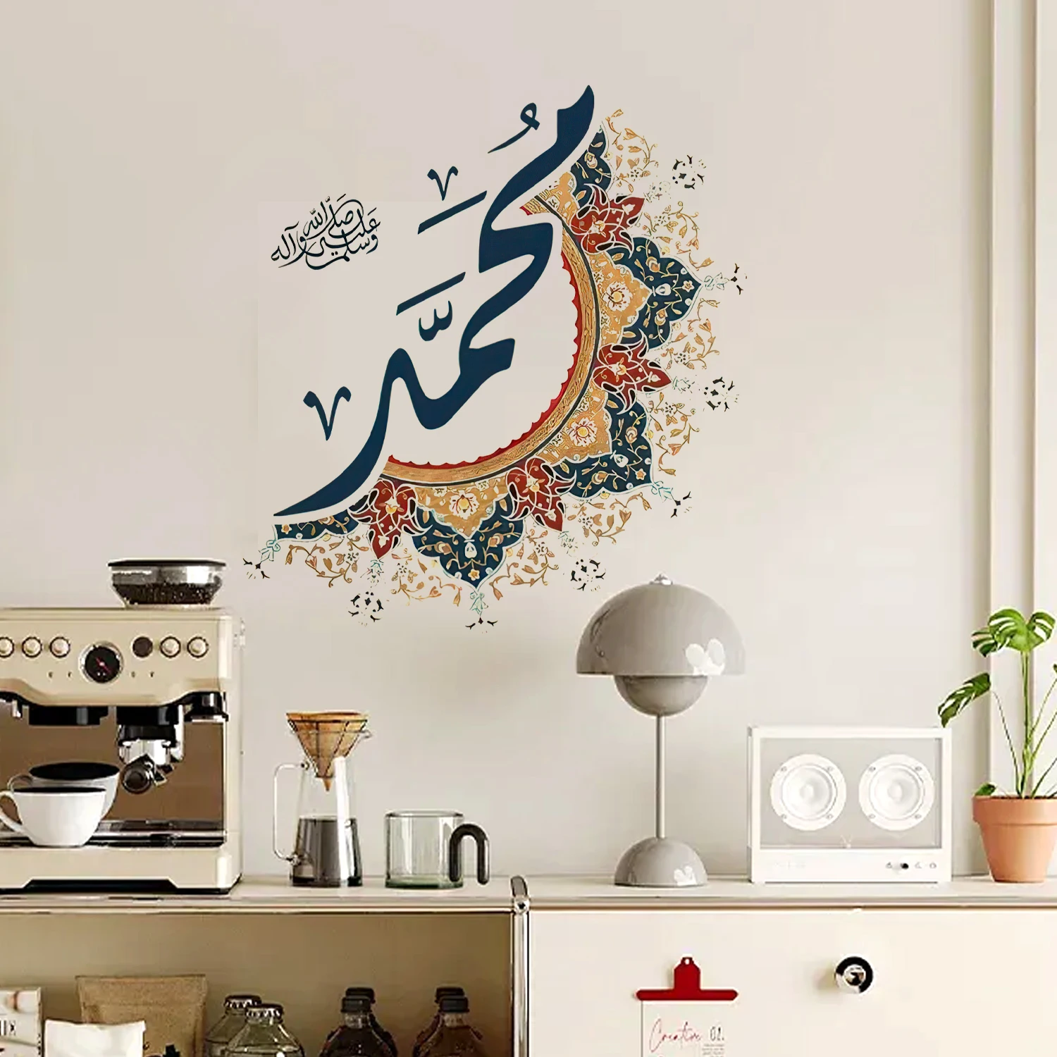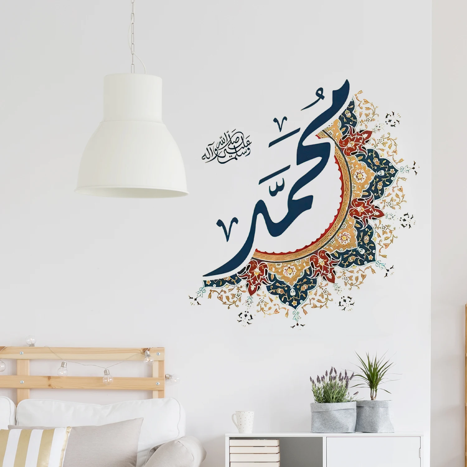 Autocollant mural artistique avec nom de Muhammad islamique, calligraphie arabe, Design Floral, autocollant mural musulman élégant, décor de salle de prière pour salon |