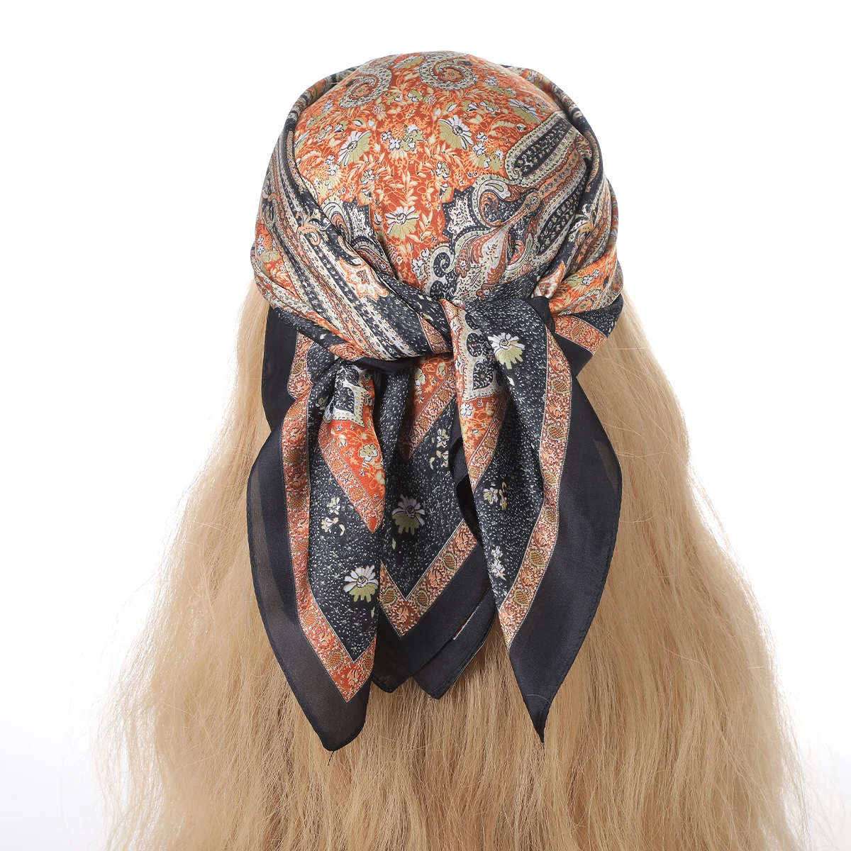 Foulard en soie 90x90cm, marque de luxe de styliste, tête d'impression de cheveux, grand mouchoir Hijab châle pour femmes, Bandanna, Foulard silencieux |