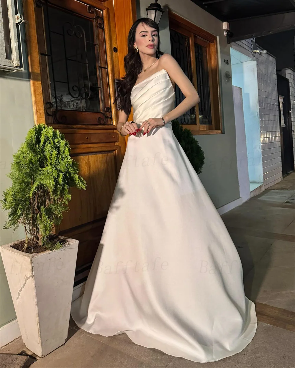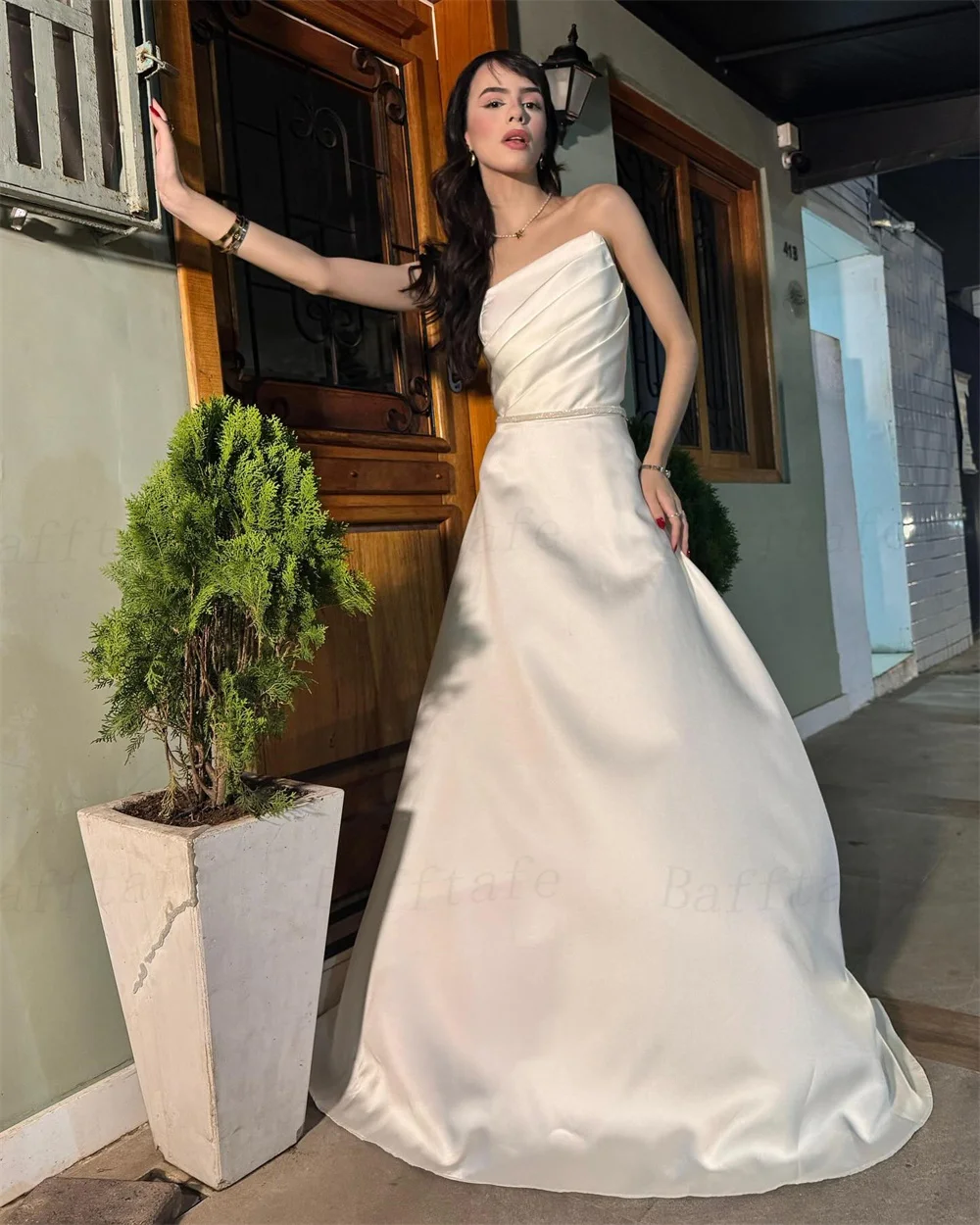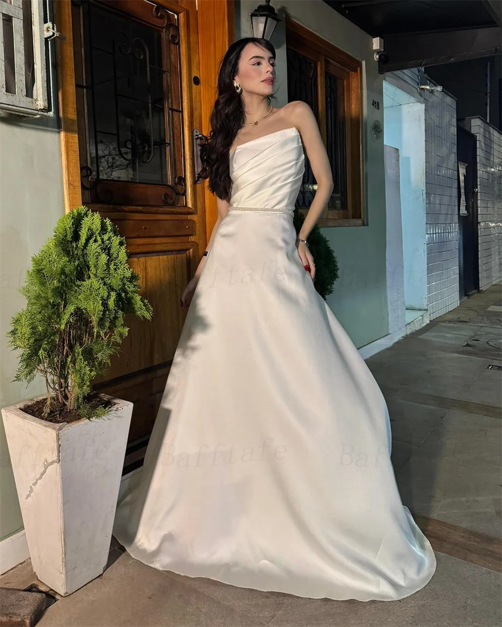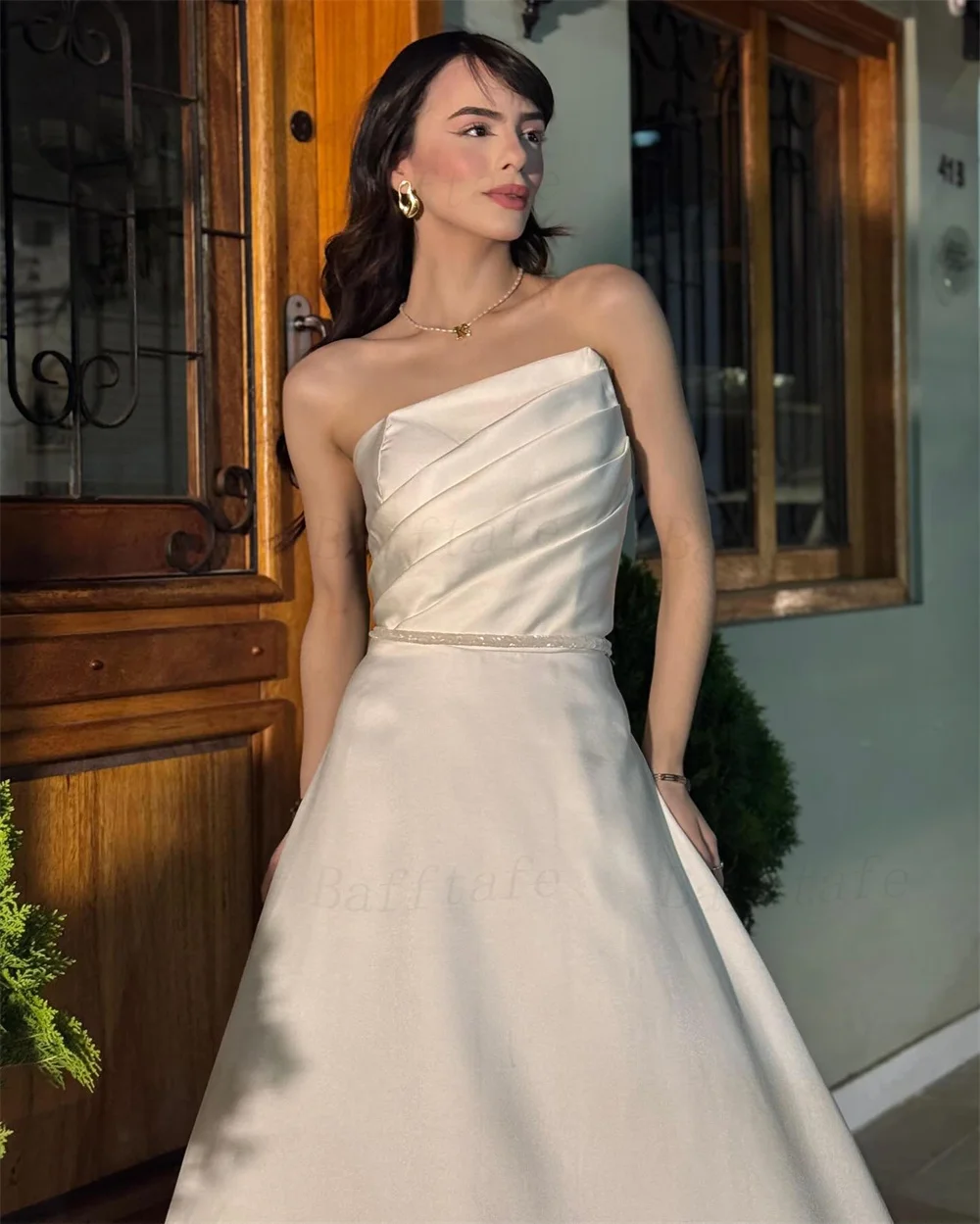 Bafftafe-Robe de Mariage en Satin pour Femme, Ligne A, Plissée, Personnalisée, pour Patients Coréens, Tenue de Photographie Formelle, 2025 |