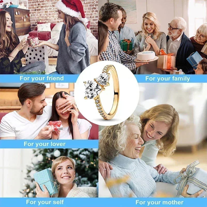 Bague couronne carrée classique en argent Sterling 925, série couleur or exquise, en forme de cœur, bijoux à breloques exquis, cadeaux d’anniversaire