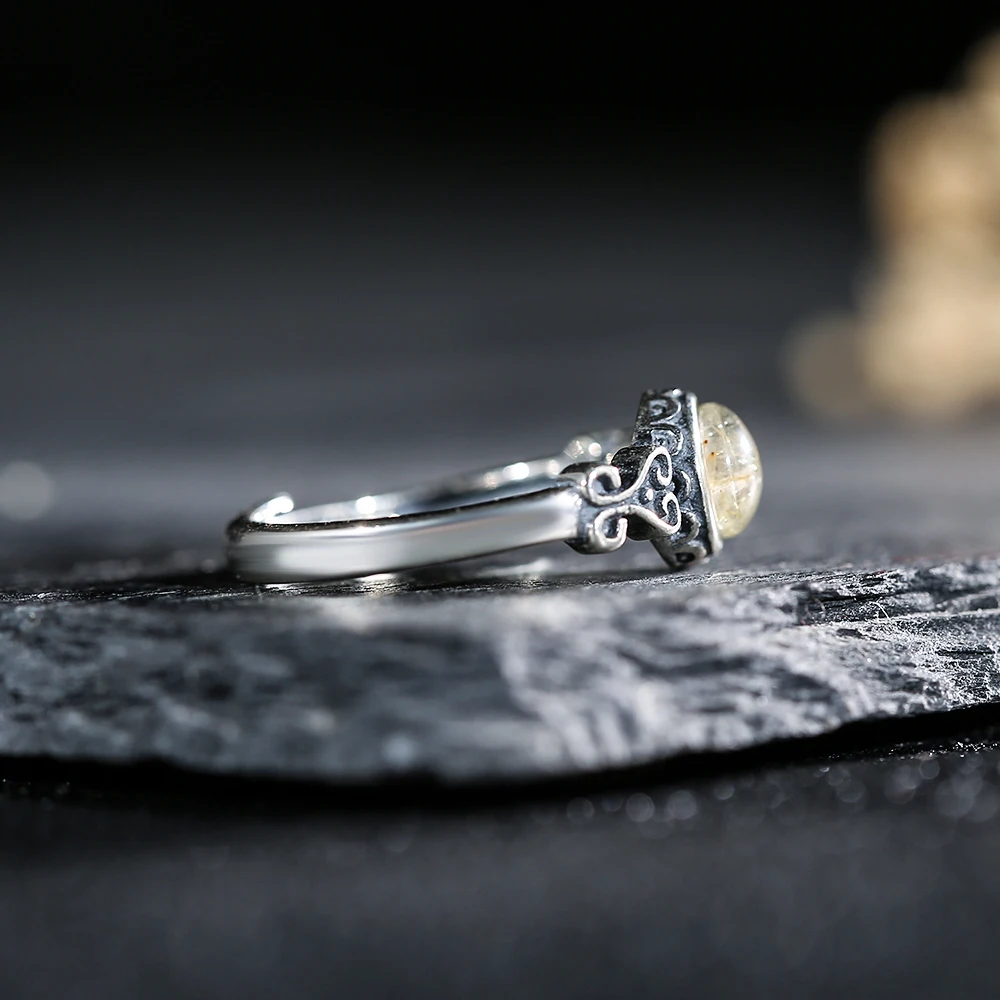 Bague en argent S925 à motif vintage pour femme, bague en cristal de table naturel, bijoux exquis, bague pour couple, accessoires de fête |
