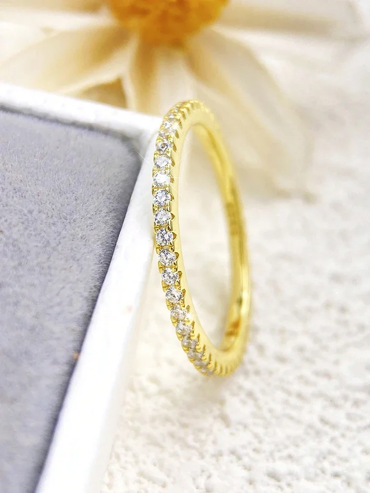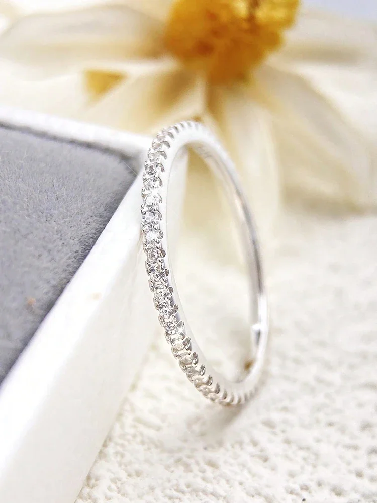 Bague en argent Sterling 925 pour femmes, brillante, 1.4mm, entièrement en Zircon, empilable, uni, fête quotidienne, bijoux fins personnalisés