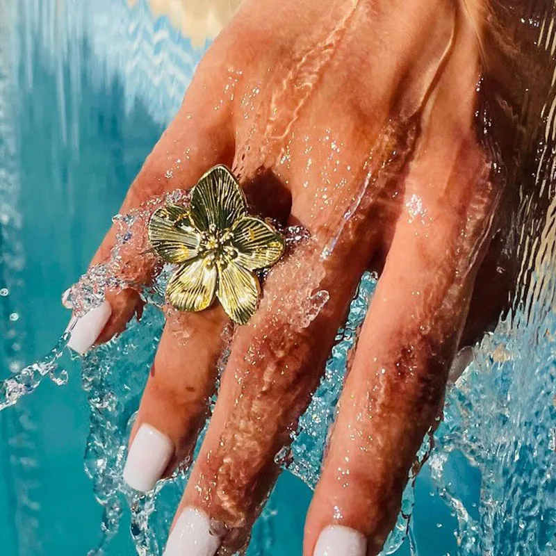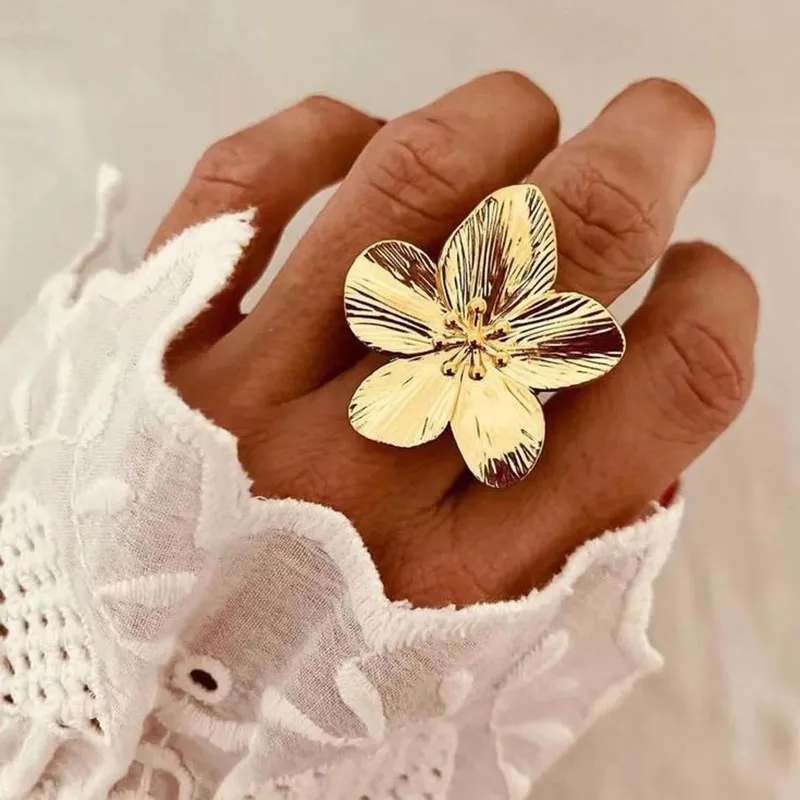 Bague fleur plaquée or de haute qualité pour femmes, Simple, mode Baroque, perle, bagues de déclaration, bijoux |