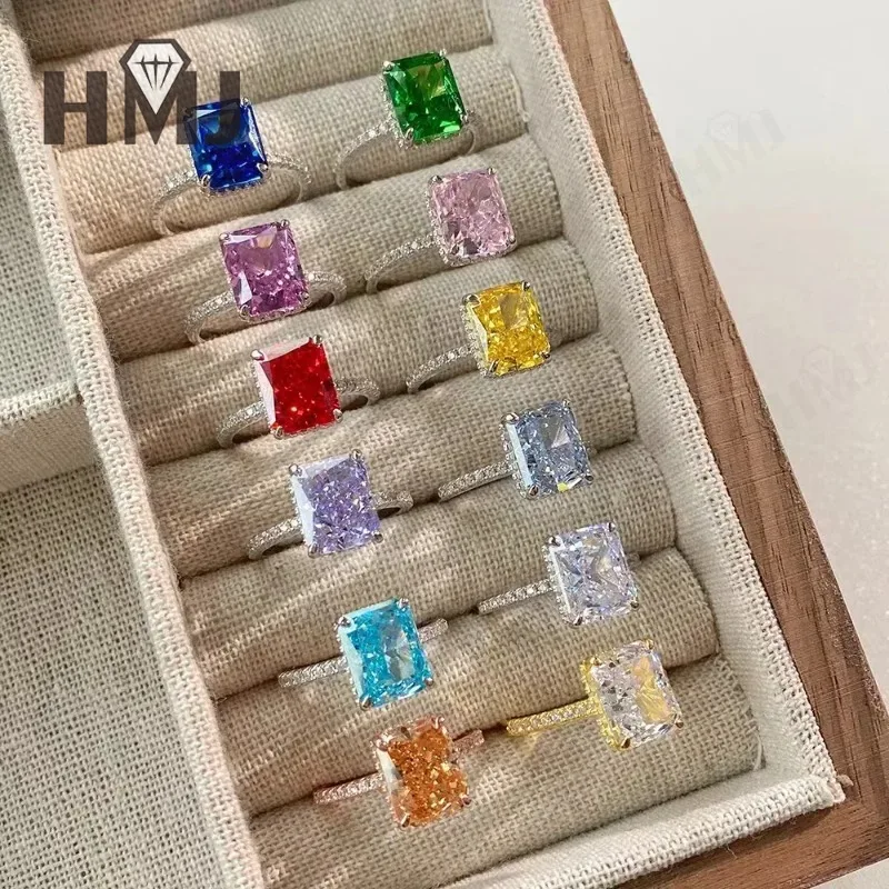 Bagues en argent S925 pour femmes, diamant, Moissanite, 4 carats, écrasé, coupe glacée, contre-indiqué, mariage, fiançailles, cadeau |