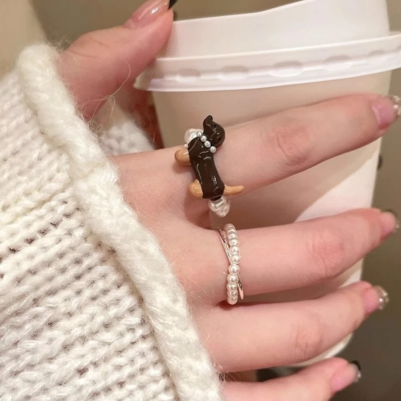 Bagues en perles de chiot délicates pour femmes et filles, ensemble de bagues en Imitation de perles de dessin animé, accessoires de bijoux à la mode, cadeaux pour étudiants |