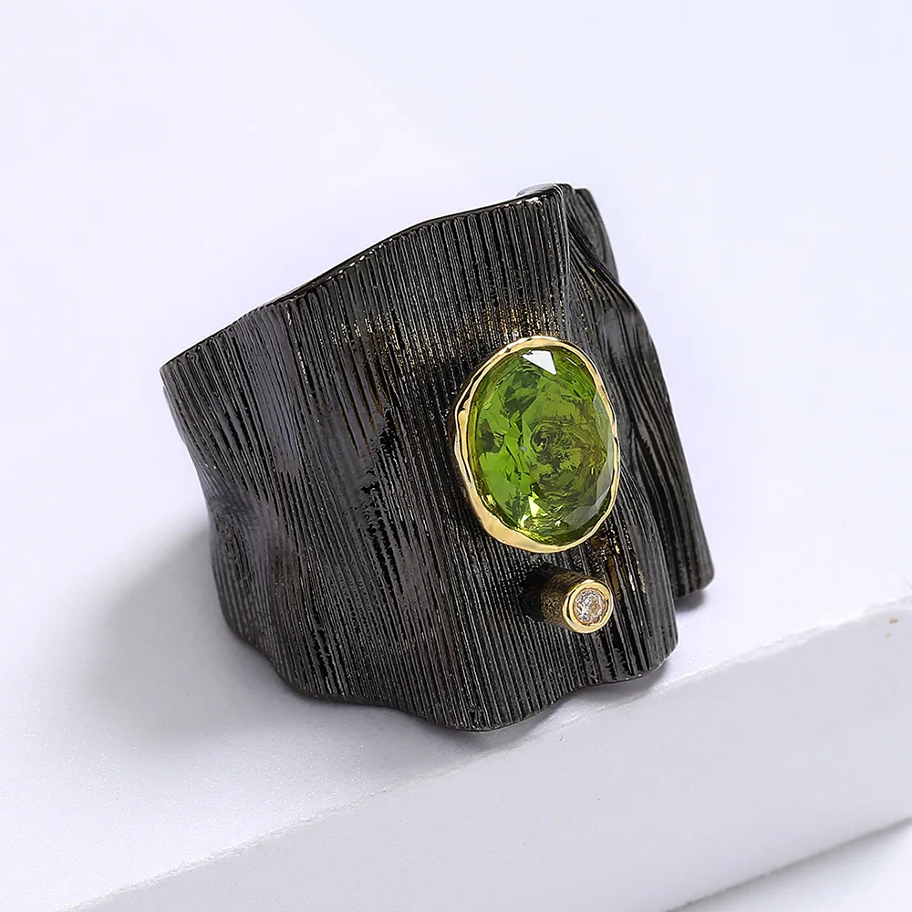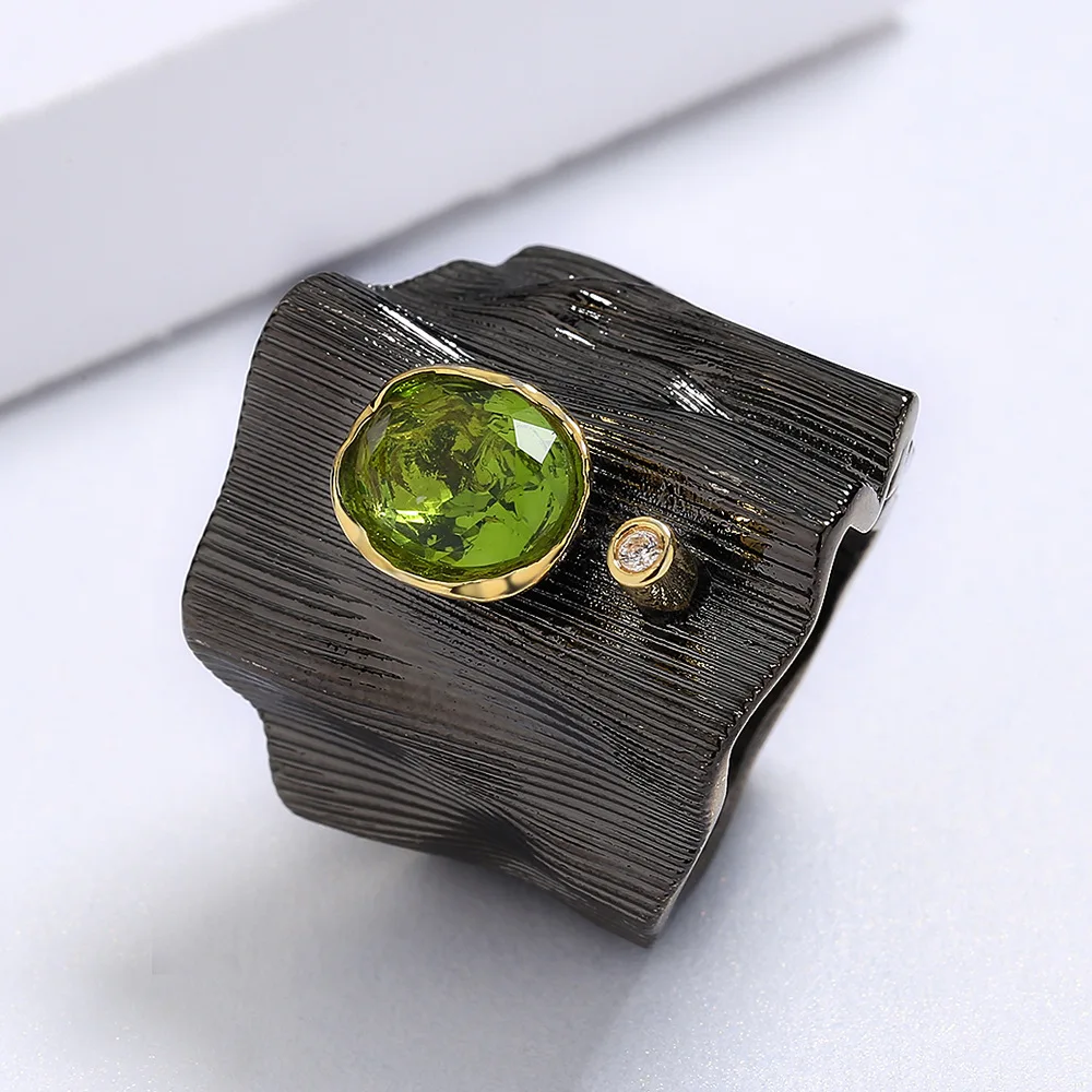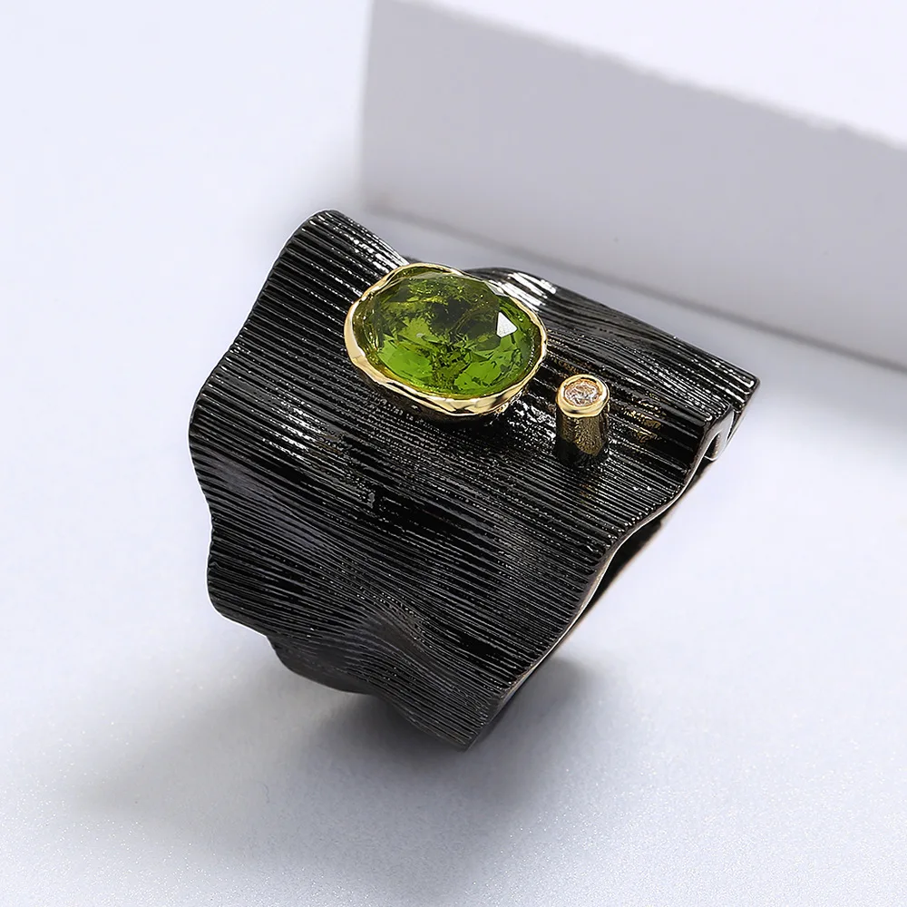 Bagues exagérées en cristal pour hommes et femmes, bijoux deux tons, or noir, géométrique, vert, bergame, cadeau de patients de mariage, 193.BR |