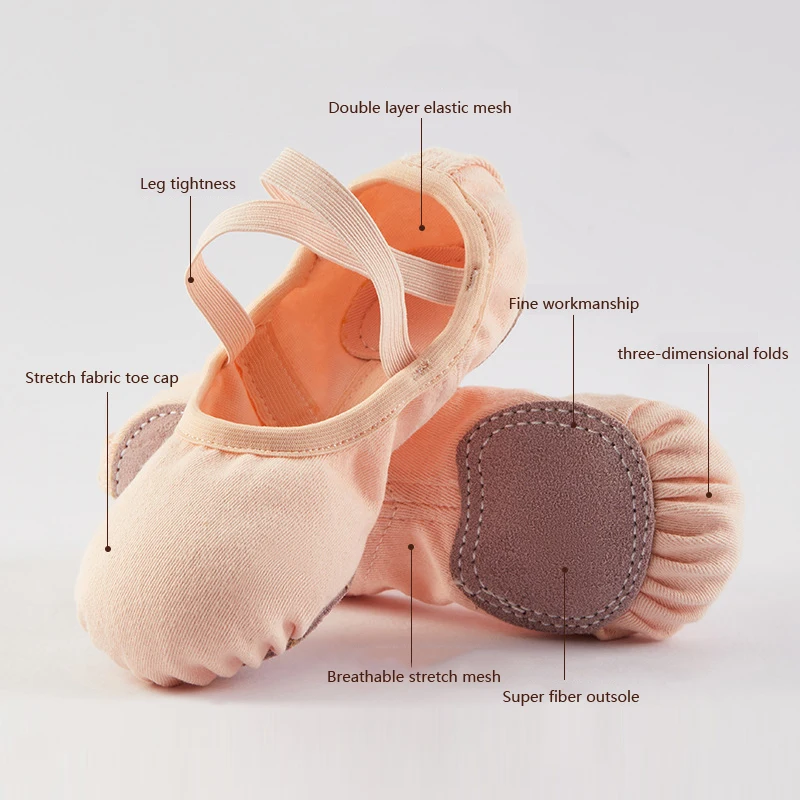 Ballerines en toile à dentelle libre pour filles et femmes, chaussures de ballet pour enfants, pantoufles de danse élastiques, semelle souple fendue |