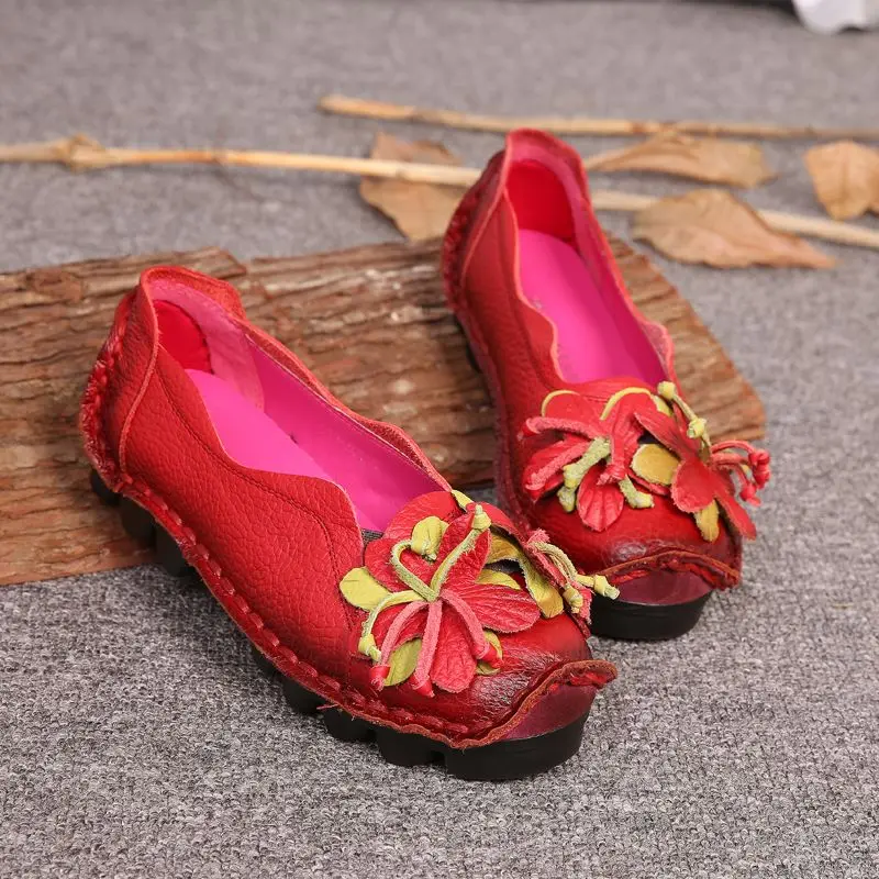 "J'adore ces ballerines rétro en cuir ! Elles sont tellement confortables et élégantes, parfaites pour porter au bureau ou lors d'une soirée décontractée. Bien que le motif à fleurs soit peut-être un peu tape-à-l'œil pour certains, je le trouve vraiment joli et original. La qualité du cuir est remarquable, et elles semblent bien faites. Le seul petit bémol est que les semelles intérieures auraient pu être un peu plus rembourrées, mais dans l'ensemble c'est un excellent achat."
