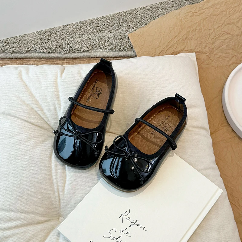 Ballerines Rondes en Cuir Verni pour Bébé Fille, Chaussures de Ballerine Classiques avec Nministériels d Papillon et Bande artificiel astique, Robe Douce pour Enfant en Bas Âge