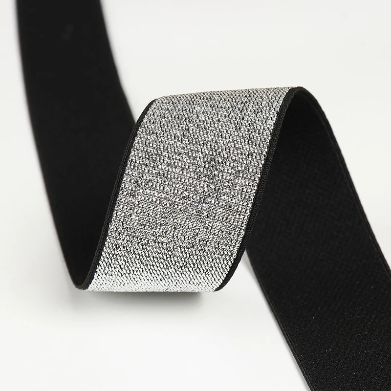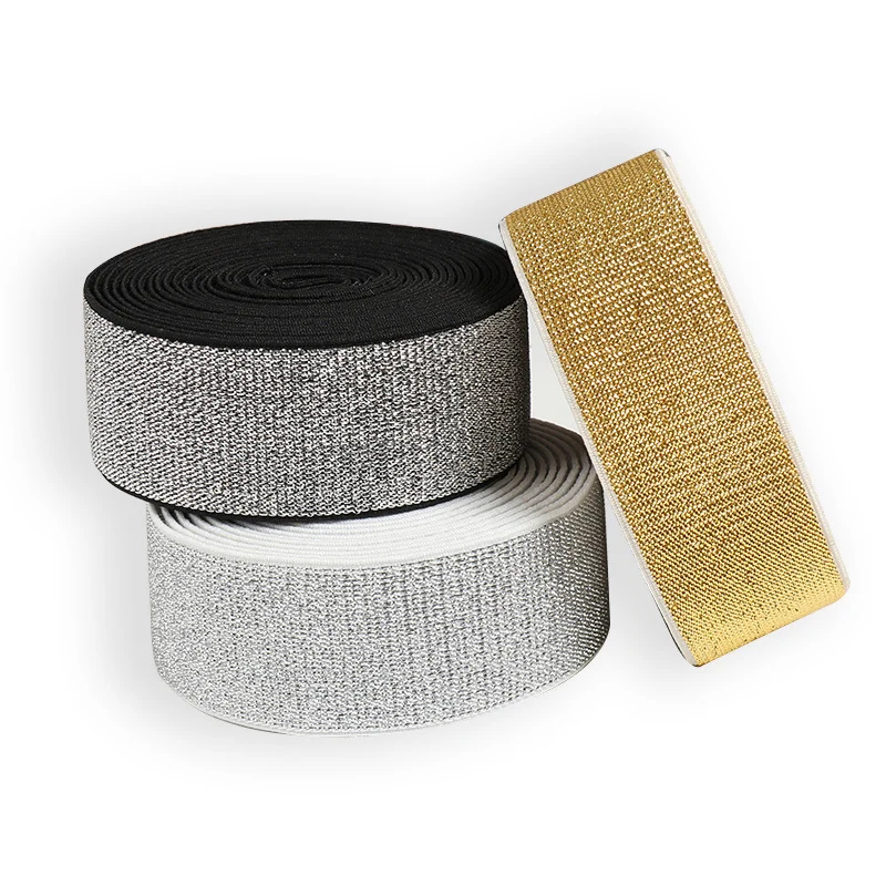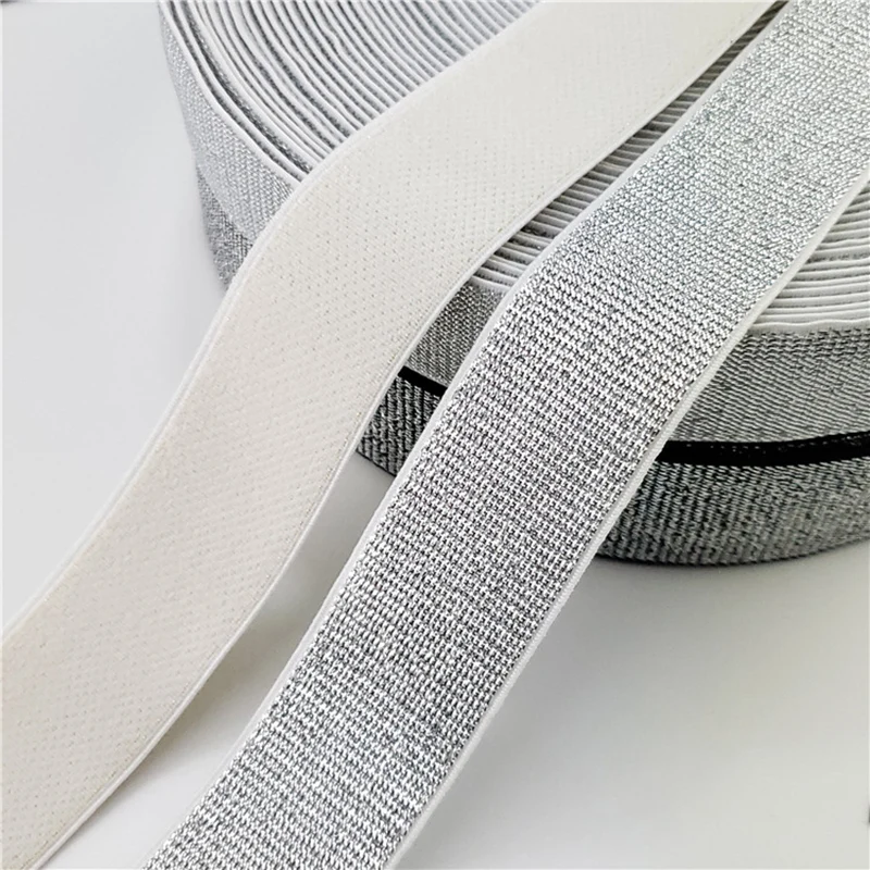 Bande élastique en soie or argent, 5/10 mètres, 25-50mm, sangle en caoutchouc Polyester, bricolage, ceinture de jupe, accessoires de couture