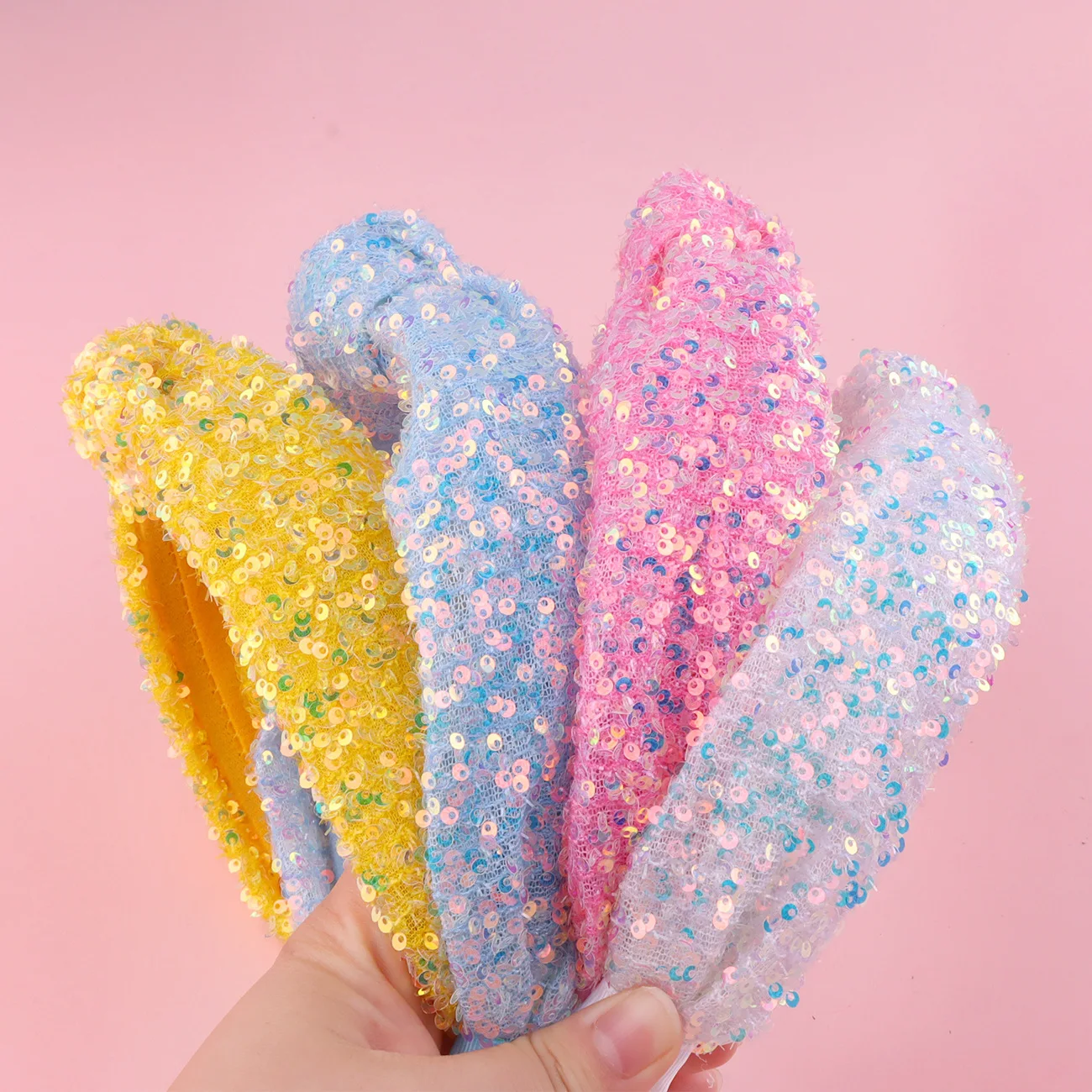 Bandeau à nœud à paillettes pour filles, accessoires de cheveux noués arc-en-ciel pour enfants, bandeaux irisés scintillants, couvre-chef de fête pour femmes