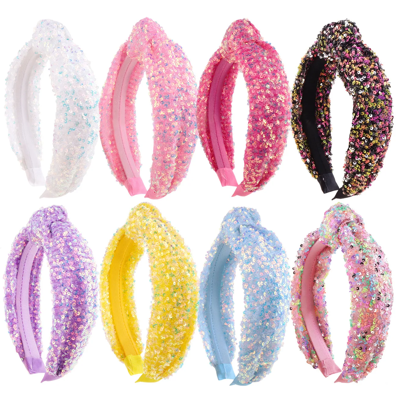 Bandeau à nœud à paillettes pour filles, accessoires de cheveux noués arc-en-ciel pour enfants, bandeaux irisés scintillants, couvre-chef de fête pour femmes |