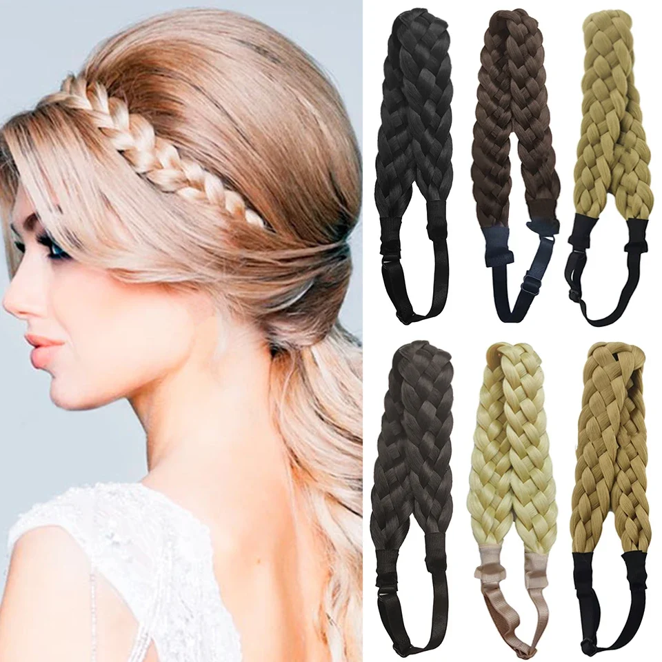 Bandeau tressé élastique avec ceinture large réglable pour femme, postiche synthétique, noir et or