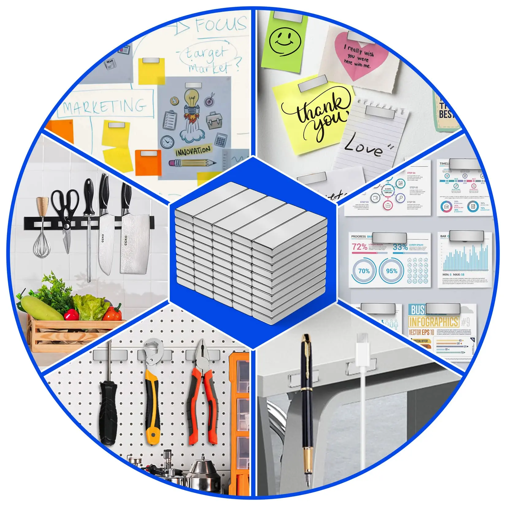 "J'ai été très impressionné par la qualité et la puissance de ces aimants magnétiques. Ils sont vraiment super puissants et tiennent parfaitement sur toutes les surfaces métalliques que j'ai testées. Le seul petit bémol est que le revêtement se raye un peu facilement, mais cela n'affecte en rien leur performance. Dans l'ensemble, c'est un produit de très haute qualité qui correspond parfaitement à mes attentes. Je le recommande sans hésiter à tous ceux qui recherchent des aimants puissants et fiables."