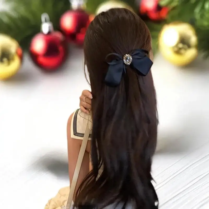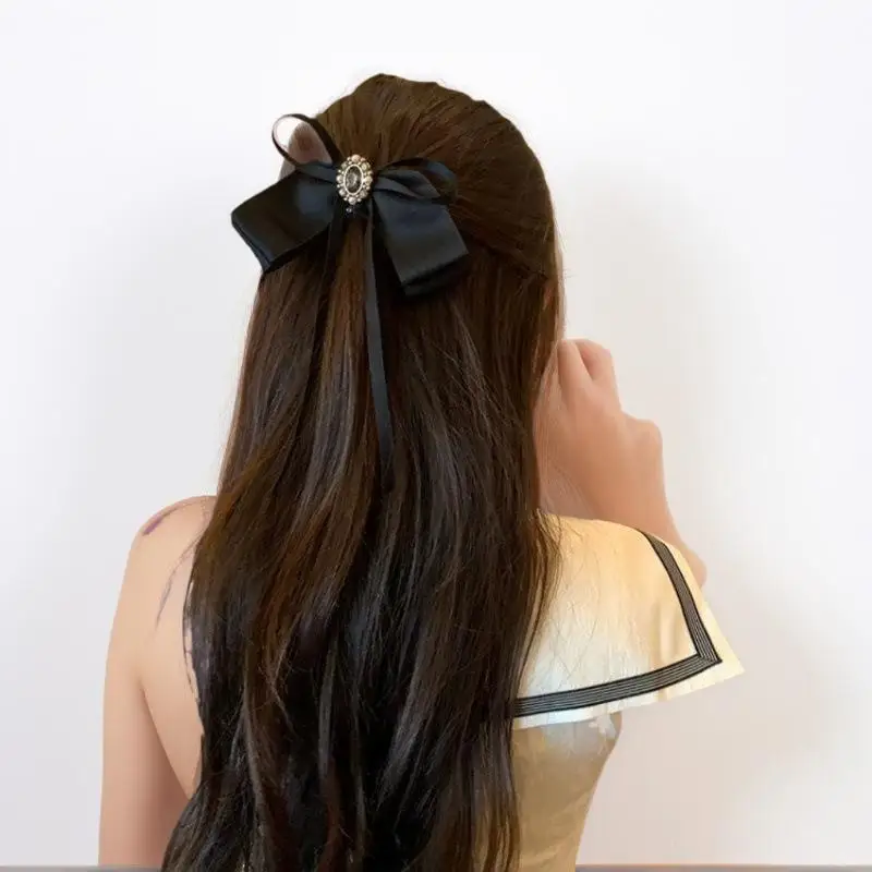 Barrette classique en ruban à nœud noir pour femme ; Accessoire mignon pour épingle à cheveux et pince à queue de cheval ; Bandeau noir parfait pour les filles. |