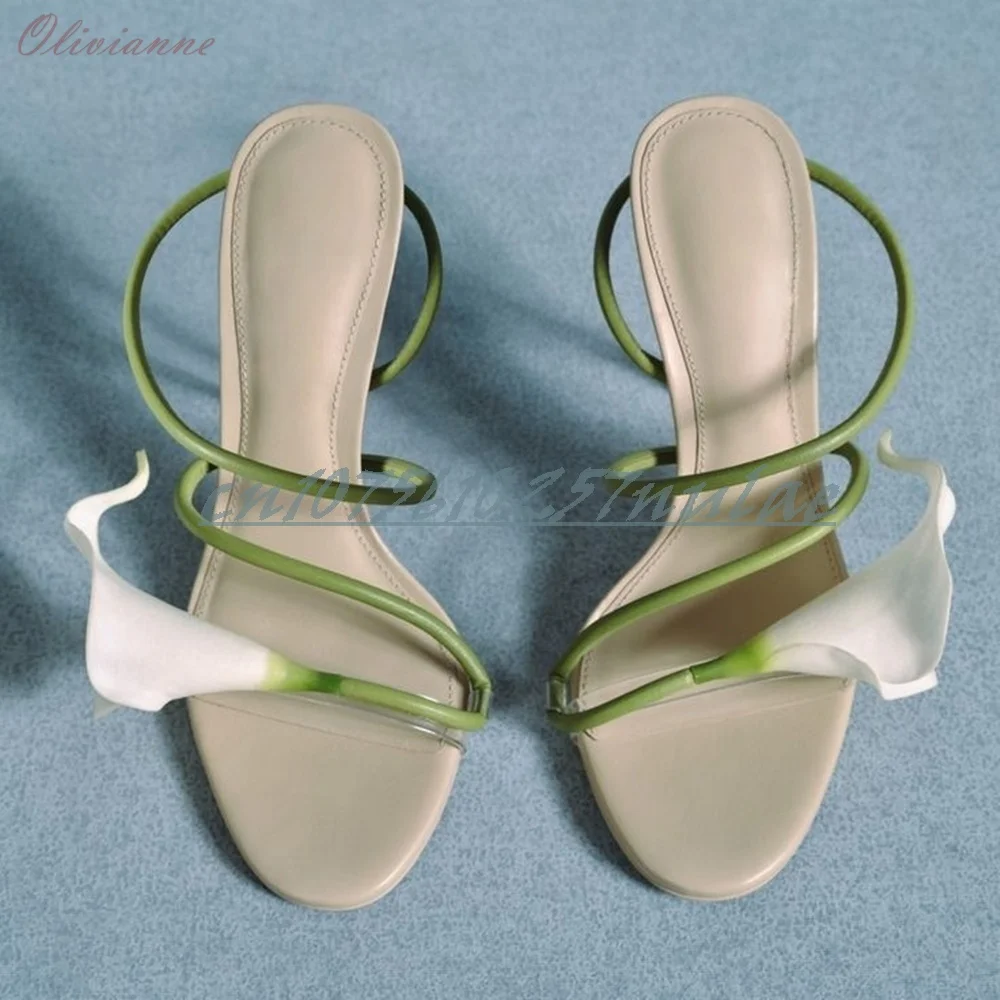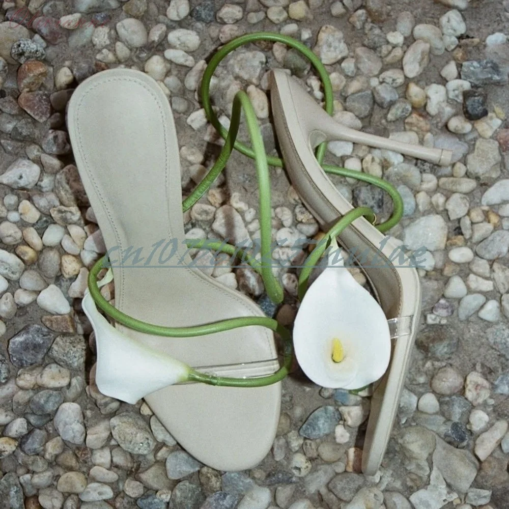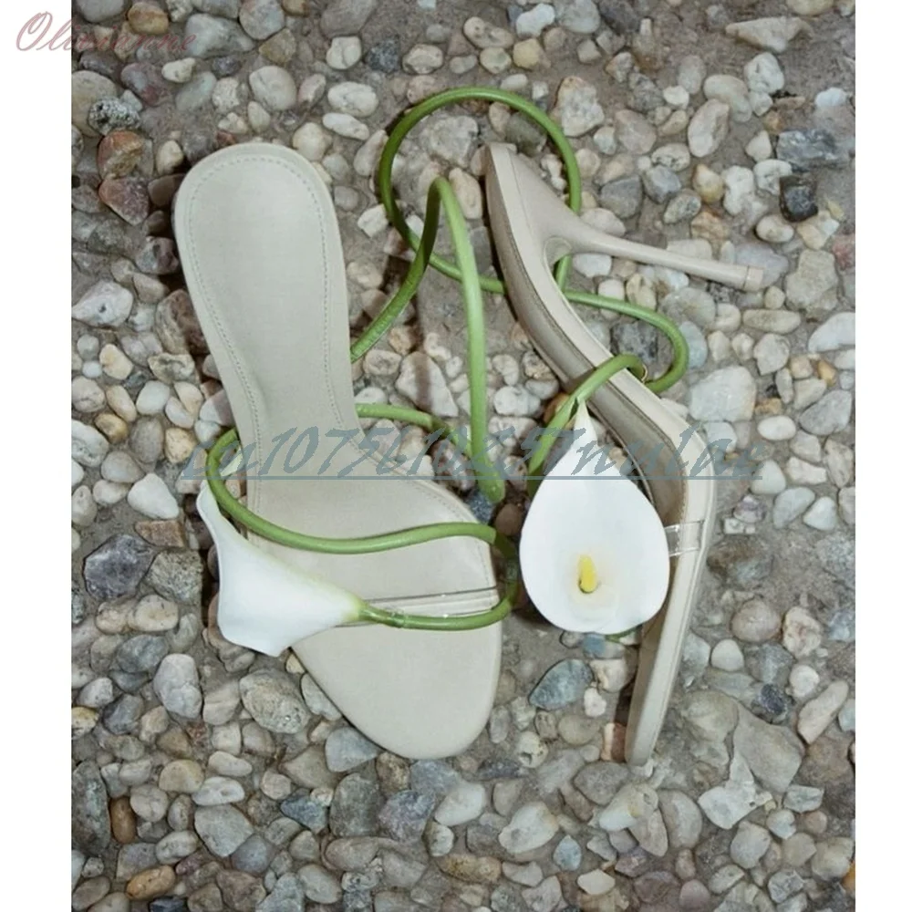 Beige fleur décor sangle sandales creuses fête de mariage bout ouvert talon aiguille mode 2025 été femmes chaussures Para Mujere |