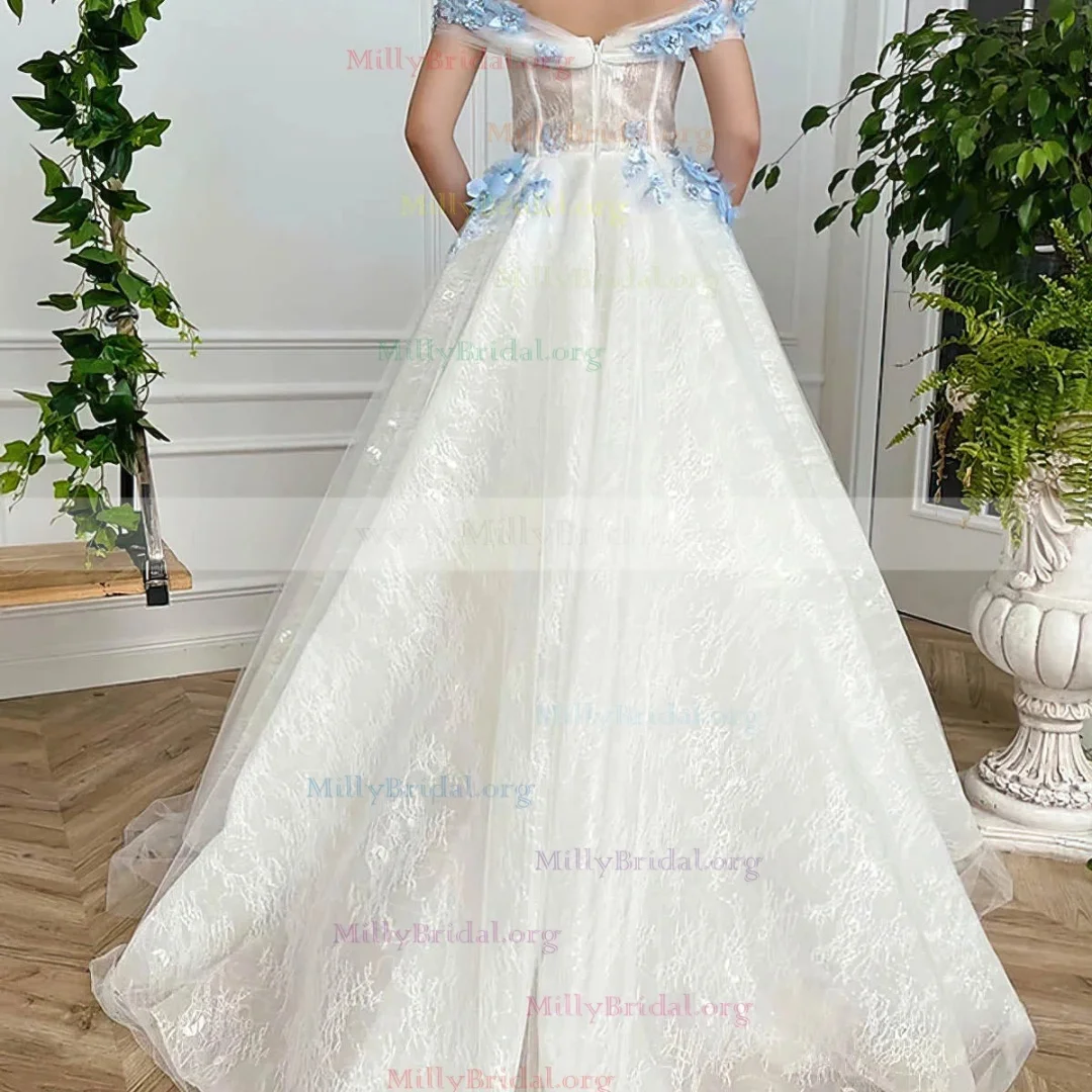 Bella personnalisé blanc paillettes 3D fleurs une épaule robes de soirée maille tissu robes de soirée parole longueur robe de bal 2025 |